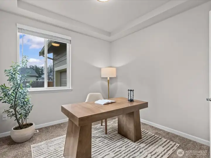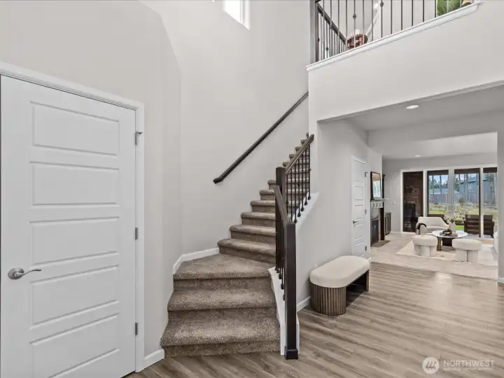 Well maintained and cared for Silver Hawk home bathed in natural light on prime 0.7 acre South facing parcel! Enter into the bright and airy foyer with dramatic 18' vaulted ceiling and lofted space above. A thoughtful floor-plan creates easy living and flow, with an office on the main floor and custom built-ins throughout the home. 3 sliding glass doors open to the covered deck and provide a comfortable and private indoor/outdoor entertainment and relaxation space, with an opportunity to take in the expansive and fully fenced backyard and lush level lawn. Upstairs features 4 bedrooms, laundry room, and cute reading nook/flex area. The spacious primary suite has an oversized and spa-inspired 5-piece bath and walk-in closet, and is perched above the backyard, well screened and distant from the neighboring homes. Home is equipped with an Aquasana whole-house water filtration system and 220V plug in the insulated garage. An abundant and natural wooded yard remains for you to utilize and tailor to your needs, and the home comes ready with a newer riding lawnmower to roll out of the backyard garage door!