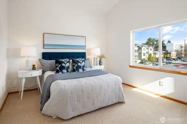 Welcome to the heart of Ballard, where neighborhood charm meets everyday convenience. This bright, private townhome features main-floor open living with hardwood floors throughout the dining and living areas, anchored by a cozy gas fireplace. Sunlight pours through the windows, framing territorial views. Upstairs offers two bedrooms and a full bath beneath soaring ceilings, while the lower level presents an additional bath and a large third bedroom with its own separate entrance, a great option for guests, a home office, or potential rental income. A coveted garage plus additional off-street parking adds rare practicality. You will appreciate this well-kept home with new paint and carpet throughout as well as a new roof as of June, 2025. Step outside, and you’ll be spoiled for choice: lively breweries, trendy shops, and standout restaurants are moments away. Enjoy nearby outdoor gems like Hiram M. Chittenden Locks, the Burke Gilman Trail, Shilshole Marina, and Golden Gardens. Easy access to Fremont, Phinney Ridge, plus quick routes to downtown Seattle, round out an unbeatable location. Exceptional value in an amazing neighborhood.