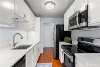 Welcome home to this top-floor corner condo unit in desirable North Tacoma! This two-bedroom unit offers a comfortable layout with two oversized bedrooms and a full bath connected to the primary for added convenience. The open living and dining areas create an easy flow for everyday living and feature a cozy wood-burning fireplace with stone surround. The galley kitchen is upgraded with quartz countertops, white kitchen cabinets, and stainless steel appliances.Enjoy your own covered balcony with a large storage closet plus the convenience of in-unit washer and dryer, no shared laundry! HOA dues include water, sewer, garbage, lawn care, earthquake insurance, and cable TV, making budgeting simple and predictable.Located just off Hwy 16 and minutes to TCC, YMCA, and the popular 6th Ave Business District, this is an ideal opportunity to own in North Tacoma at an approachable price point. No rental cap.