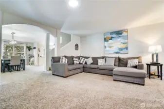 Beautiful nearly 3,000 SF Spanaway home in the Nancy Estates! This well-maintained 4 bed, 2.5 bath residence offers a spacious, functional layout with plenty of room to grow. The main level features a welcoming front living room, a sunny dedicated office/gym or potential 5th bedroom, huge walk-in pantry and an open concept dining room with gas fire place. The kitchens been updated with granite tile countertops, paint, stainless appliances, modern fixtures, and a seamless flow into the dining area. Upstairs you’ll find all four bedrooms, a full laundry room, and an oversized rec room. Each bedroom is positioned at a corner of the home for added privacy, while the XL primary suite is thoughtfully separated. Primary suite includes double sinks, a soaking tub, open space, and a large walk-in closet. Enjoy tall ceilings, recessed lighting, and generous living spaces throughout. Step outside to a huge deck and an expansive patio perched above the hill just in time for spring and summer BBQs. Conveniently located near JBLM, McChord Air Force Base, shopping, dining, and year-round PNW recreation. Don’t miss this one!