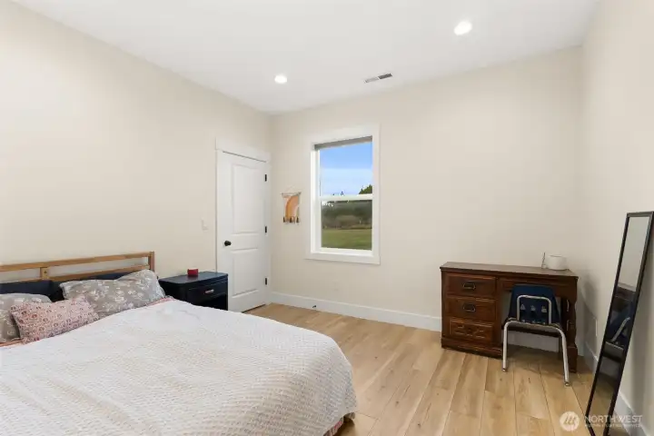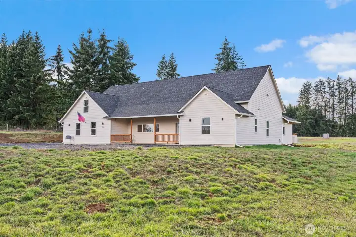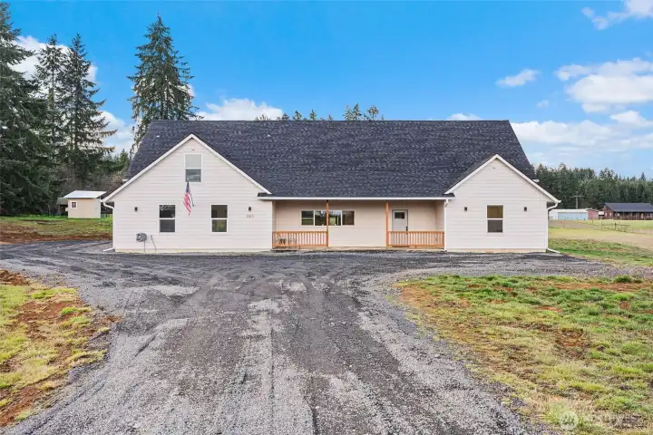 Like-new contemporary home built in 2023 on almost five usable, peaceful acres. This 4-bedroom, 2.5-bath home offers 9’ ceilings, abundant natural light, and an open, functional layout with all bedrooms on the main level—each featuring walk-in closets—plus a large bonus room upstairs. The spacious kitchen includes a large island, walk-in pantry, coffee bar, and stainless-steel appliances. The primary suite offers a generous walk-in closet and large tile shower. Additional features include a spare subpanel, two 50-gallon water heaters, large laundry room, attached 2-car garage, covered front porch, and an oversized covered back patio for year-round outdoor living. Huge bonus: approved ADU plans and permits on file plus a second well already installed. Open yet private setting with a newly built sauna—ready for its new owner with excellent future potential. Priced well below the original appraised value of $780,000.