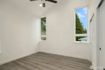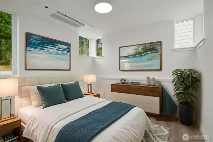 Brand-new 2-bedroom home showcasing modern design, premium finishes, and exceptional craftsmanship throughout. A fully landscaped front yard offers a warm welcome, while secure garage parking provides both convenience and flexibility. The lower level features direct garage access, along with a private bedroom and full bath perfect for guests, a home office, or additional living space. The main level highlights a stunning primary suite with vaulted ceilings and a beautifully appointed bath, complemented by an open-concept kitchen, dining, and living area designed for seamless entertaining. Enjoy the rooftop deck with incredible south-facing views, including a peekaboo view of Lake Washington, mountain vistas, and stunning sunrise-to-sunset scenery. Every detail of this home reflects impeccable quality and thoughtful design, custom-built by Steven Martinsen, founder of Homes West Inc. This home reflects over 35 years of expert craftsmanship and attention to detail from site development to fine finishes. Ideally located just blocks from Hazel Wolf School, neighborhood shops, and restaurants, with easy access to Light Rail and the vibrant Northgate redevelopment featuring 41 acres of retail, dining, and the Kraken practice facility. Nestled between Lake Washington and Green Lake, Victory Heights offers the perfect blend of peaceful residential living and convenient access to city amenities.