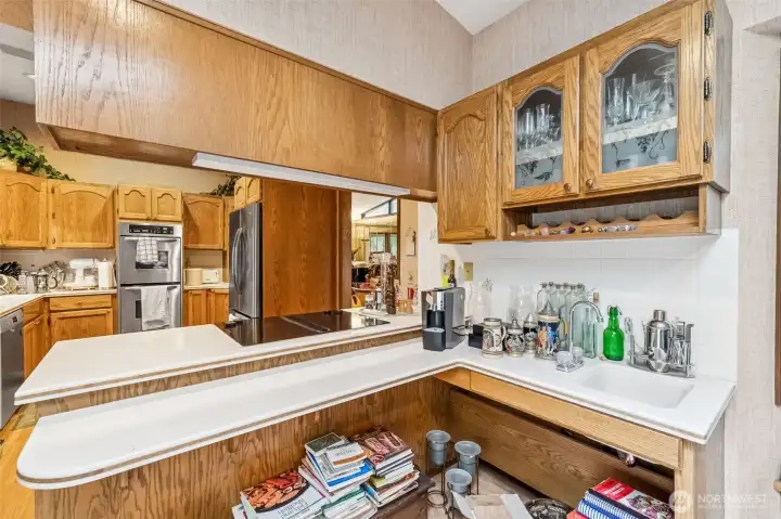 Opportunity awaits your vision! This one-story custom home with several ADA components offers solid bones and endless potential. The open kitchen has been updated with stainless appliances, flat cooktop, double ovens, wet bar, and a sunny eating nook flowing into the gathering room with woodstove. Formal living room, large laundry with abundant storage, and two primary suites with access to the atrium/spa room (could easily function as a 3-bedroom). Extra-wide halls and doorways provide wheelchair accessibility. Covered parking, circular driveway, gated entry, and 1 acre of trees, garden space, and room for a mini-farm. Located in desirable Tahoma Schools.Estate sale — home is very full and estate company will be working on site during showings. Please allow time and flexibility. Great opportunity for investors or handy buyers ready to bring this property to its next chapter.