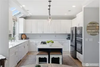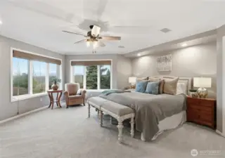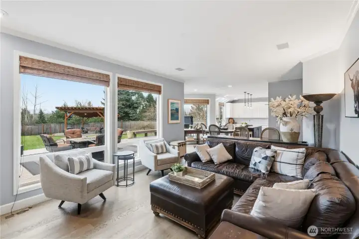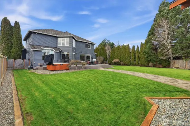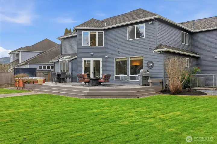 Life in Trossachs is defined by space, connection, and an easy rhythm that supports both everyday living and time well spent at home. Located at the front of the neighborhood and tucked at the end of a quiet cul-de-sac, this home offers privacy, flexibility, and seamless access to parks, trails, schools, and Sammamish Plateau amenities. The main level is designed for gathering, anchored by a remodeled kitchen that opens to dining and living spaces warmed by upgraded Regency fireplaces. Step outside to an expansive view deck overlooking Mt. Si and the Cascade foothills, where morning sun and shaded afternoons create a natural extension of the home. One of the largest backyards in Trossachs invites year-round enjoyment with lush landscaping, a dedicated practice golf driving range, a large cabana with firepit and heaters, and an Olympic, six person hot tub. Upstairs, the primary suite feels like a true retreat with a refreshed, spa-inspired bath; while additional bedrooms and a large bonus room offer flexible space for work, play, or relaxation. Thoughtful updates throughout, plus generator-ready infrastructure and a spacious garage, complete a home built for how people truly live.