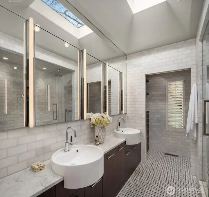 This modern, sophisticated home—worthy of an Architectural Digest spread—is tucked along a tree-lined street in the heart of Capitol Hill, just two blocks from iconic Volunteer Park. Luxury begins the moment you enter. The main level features an open-concept chef’s kitchen with a Wolf oven and range, Sub-Zero refrigerator, Miele espresso/cappuccino maker, and extensive custom cabinetry offering abundant storage and prep space. Designed for entertaining, the spacious layout invites friends to gather and join the fun. The fireside living room and dining area flow seamlessly to the backyard patio for effortless indoor-outdoor living. The private patio is perfect for summer dinners and BBQs. Upstairs are three bedrooms and a stunning primary suite offering a daily spa experience, complete with heated marble floors and a steam shower. Unwind fireside with a book and enjoy thoughtfully designed built-in storage in every room for a refined, organized feel. True Seattle living awaits, with top restaurants, parks, and cultural attractions just steps away. Downtown Seattle, Bellevue, Kirkland, and Redmond are minutes from your door. A rare two-car garage completes this exceptional offering. More than a home—it’s a lifestyle.