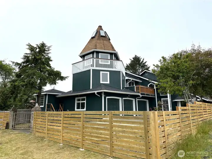 One-of-a-kind custom home with water views. Built for strength and safety, per the original owner/builder, this home features a monolithic foundation, steel rebar, heavy-grade copper plumbing, 12-gauge wiring, and full insulation even in the soffits—for year-round efficiency. Designed to withstand coastal weather, this home offers expansive living areas, vaulted ceilings, a custom fireplace, and a gated, fully fenced lot. All bedrooms are upstairs, offering privacy and separation from the living areas below. Highlights include oversized decks, detached workshop, 3-car garage, and spiral staircase leading to a viewing copula. Located close to public beaches, boat launches, and parks. A must see for those seeking coastal durability and charm!