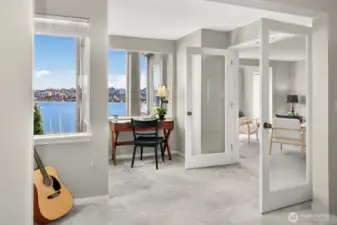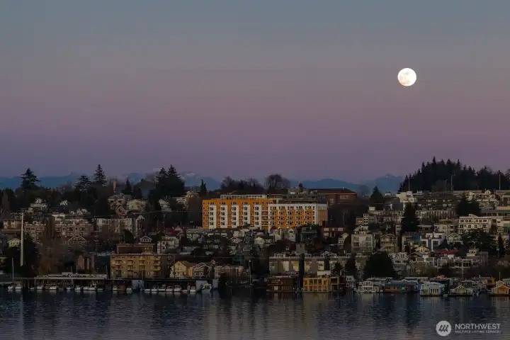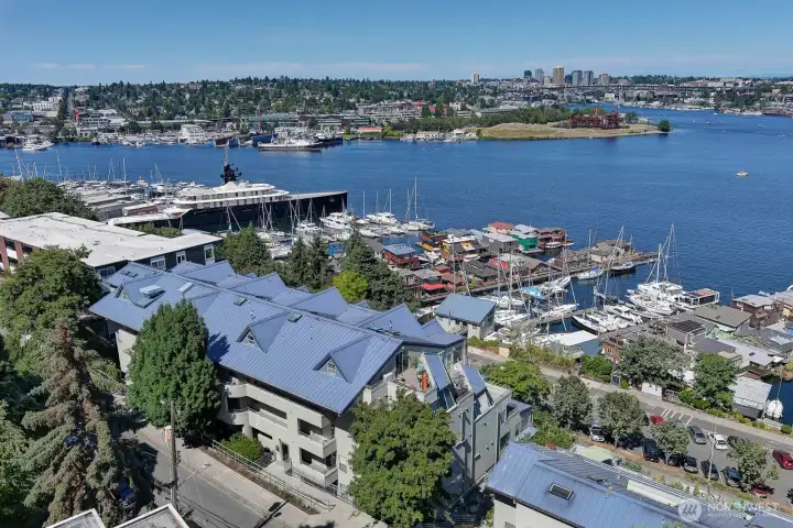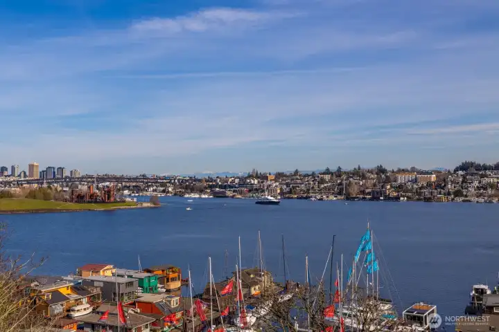 Lake View Condo! Enjoy panoramic views of Lake Union’s lively scene, including seaplanes, yachts, sailboats, crew races, fireworks, Gas Works Park—all visible from your two-bedroom condo. The layout is flexible: the second bedroom can serve as an office or extra living area, perfect for working from home with views to the lake and bustling pathway below. The primary suite includes a five-piece bath and a walk-in closet with custom built-ins. Commuting is easy; Amazon, Google, Facebook, and downtown amenities are just minutes away. If you love water activities, bring your paddleboard or canoe for convenient access to the waterfront. Heading out on the town? You can easily leave your car at home as breweries, restaurants, entertainment and shops are easily reached by walking, biking, or public transit. All this + a well-managed HOA with low dues, (water, sewer, gas, & garbage included) and the rental cap is not yet filled. Additionally, it even boasts a one-bedroom furnished condo available for rent, making hosting guests a breeze. Move-in before summer!