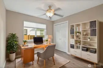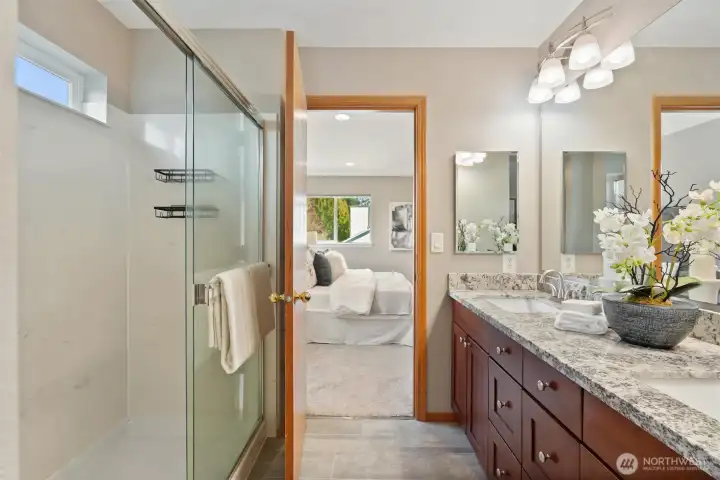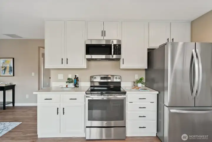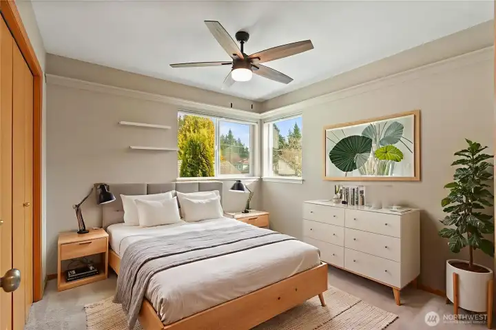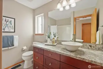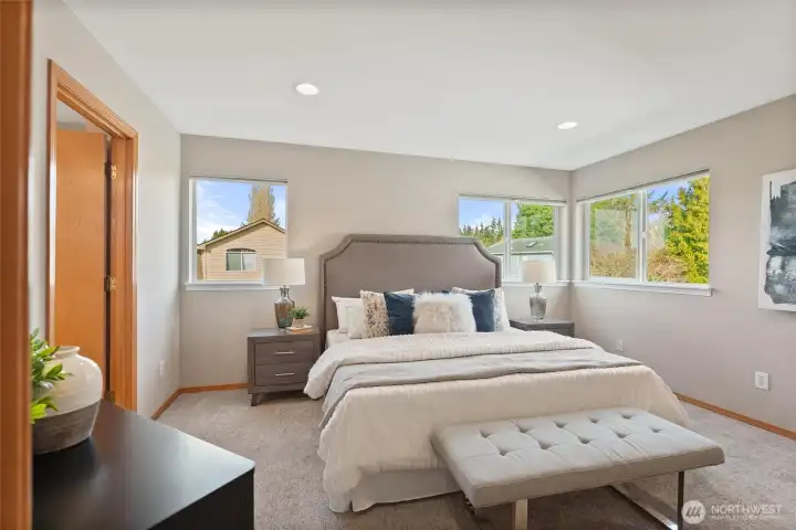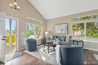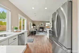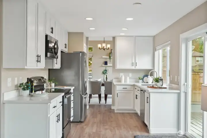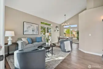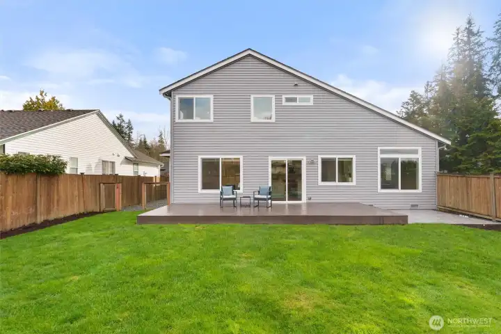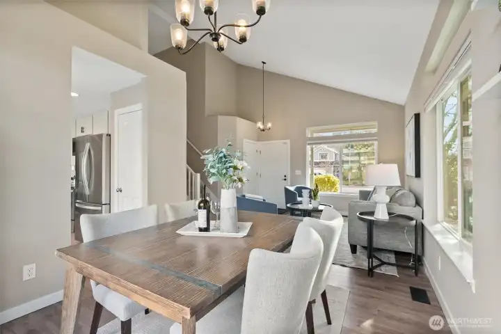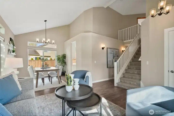 From the moment you step inside, soaring vaulted ceilings create a dramatic & inviting first impression. The formal living & dining rooms offer the perfect setting for entertaining guests or hosting memorable gatherings, while luxury vinyl plank flooring flows seamlessly throughout the main floor. The kitchen is thoughtfully updated w/ quartz countertops, crisp white cabinetry, stainless steel appliances & a pantry for plenty of storage. This is open to the family room w/ a cozy gas fireplace. Just off the kitchen, a Trex deck extends your living outdoors — overlooking a flat, fully fenced backyard ideal for summer barbecues, play space, or simply unwinding at the end of the day. The main floor bedroom offers flexibility for today’s lifestyle — perfect as a private home office, guest suite, or multi-generational living option. Upstairs, you’ll find three additional bedrooms highlighted by a spacious primary retreat featuring double sinks, a walk-in closet, & a well-appointed 3/4 bath — creating a comfortable sanctuary to start & end your day. Location matters — and this one delivers. Enjoy the convenience of being within walking distance to Forest View Elementary School & the award-winning Gateway Middle School. The Silver Firs community itself is known for miles of sidewalks, beautiful parks, sports fields and sports courts that encourage an active & connected lifestyle. This is more than a home — it’s an opportunity to live in a community people move to & rarely leave.