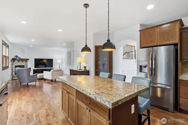 Imagine coming home to a space where comfort, connection, and calm come together effortlessly. The open-concept design flows seamlessly from the living room into the kitchen and dining area, making it easy to host gatherings or enjoy relaxed evenings at home. The gourmet kitchen with stainless steel appliances and generous cabinetry is ready for everything from casual breakfasts to memorable dinner parties. A warm gas fireplace and expansive windows anchor the family room, filling the home with natural light and creating an inviting place to unwind. A main-floor bedroom and adjacent bath add flexibility—perfect for guests, multi-generational living, or a private home office. Step outside to your peaceful backyard retreat, ideal for morning coffee, summer barbecues, or quiet evenings under the stars. Upstairs, the primary suite offers a true escape with a walk-in closet and spa-inspired bath, while a versatile bonus room adapts to your lifestyle. Enjoy the charm and tranquility of Snohomish with the wineries, dining, and shopping of Woodinville just minutes away—offering the perfect balance of serenity and convenience.