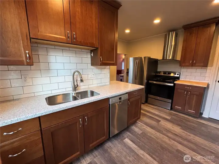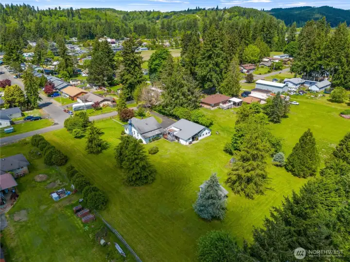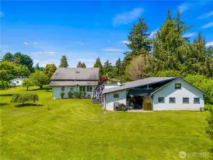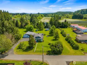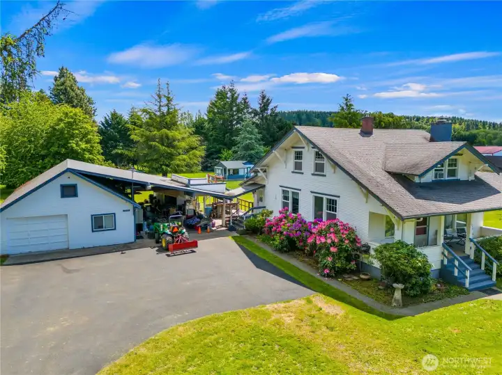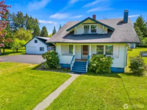 Beautifully updated 4 bedroom 2 bath home on 2 separate lots (1.25 acre). Lots are both level and meticulously maintained with a functional well for irrigation. Home features, new carpet upstairs, remodeled kitchen with new cabinets, countertops, flooring & lighting. Updated appliances with refrigerator, stove, dishwasher & range exhaust fan. Primary bedroom bathroom on main floor has new custom shower, vanity and flooring. Utility room has been remodeled and has washer and dryer hookups. Property has large detached garage and shop with reinforced driveway for heavy equipment & lots of additional parking. Lots of room to grow for possibly ADU or additional shop. Amazing yard, decks, green house and gardening space for relaxation and entertaining. All and just minutes to I-5, shopping, parks and schools.