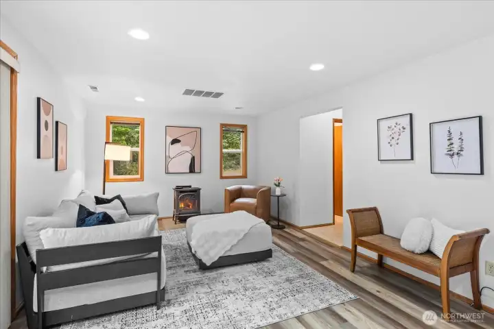 Buyer Bonus: 1% rate reduction for 12 months! Welcome to a private woodland retreat where tranquility, space, and future opportunity converge. Set within a serene, secluded setting, this home is thoughtfully designed for elevated everyday living, ideal for hosting, working from home, or creating inspired personal spaces. Inside, refined updates set the tone, including fresh interior paint, new plush carpeting, and luxury vinyl plank flooring that create a warm, sophisticated ambiance throughout. The refreshed kitchen features newly painted cabinetry accented by elegant brass hardware, while the primary suite is a true sanctuary, highlighted by a fully remodeled bath anchored by a stunning, restored 100-year-old soaking tub, a timeless and luxurious statement. Outdoors, the lifestyle truly unfolds. Natural landscaping with native fruit trees enhances the tranquil setting, while a fenced, level side yard offers a private haven for pets, play, or gardening. Expansive grounds offer exceptional potential for a future shop and/or an additional dwelling unit (ADU), creating a rare opportunity to expand, generate income, or accommodate multi-generational living. With ample parking, space for a boat or RV, and room to bring your vision to life, this property delivers an unmatched blend of privacy, sophistication, and long-term potential.