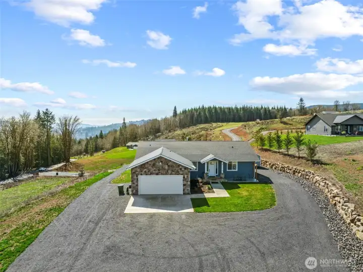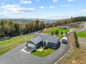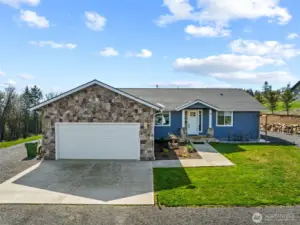 Here’s your chance to own this amazing view property on 1 level and 2.46 Acres. This well built, newer home features open floor plan with vaulted ceiling, cozy, full height, propane fireplace. stunning floors throughout, A cooks dream kitchen with quartz counters on a spacious center island and a walk in pantry. Sliding door opens to freshly poured concrete patio with amazing mountain and territorial views. The primary suite has private bath with stunning tiled walk in shower, double sinks and walk in closet. This is an entertaining dream home for those beautiful PNW summers. Room to park an RV, boat etc. Extra storage building, oversized 2 car garage. Lots of options to build a shop. Call today for a private showing.