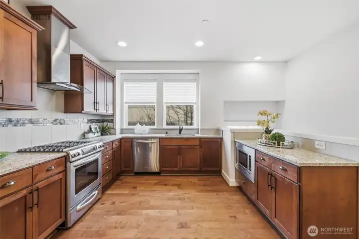 Urban convenience meets neighborhood charm. This lovely home sits in the heart of Issaquah Highlands at The Brownstones with unbeatable walkability just steps from shops, dining, gas and grocery at Grand Ridge Plaza. This beautifully maintained 3-bedroom, 2.75-bath townhome offers 1,467 sq ft of thoughtfully designed living space, and truly move-in ready. The open-concept main level features hardwood floors, balcony, and a cozy gas fireplace that anchors the inviting living area. The chef's kitchen shines with slab granite countertops, stainless steel appliances and seamless flow into the dining and living space—perfect for entertaining or everyday comfort. A private lower-level bedroom with a full bath provides ideal flexibility for guests, multi-generational living, or a home office. Upstairs, enjoy 2 more bedrooms including primary w/ensuite and new carpet throughout. Expect year round comfort with split ductless A/C, 1 car garage w/storage, and additional parking in driveway. Low-maintenance living close to parks, trails, top-rated Issaquah schools, and easy access to I-90 and Park & Ride!