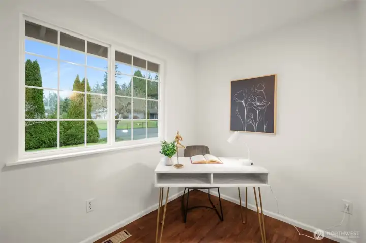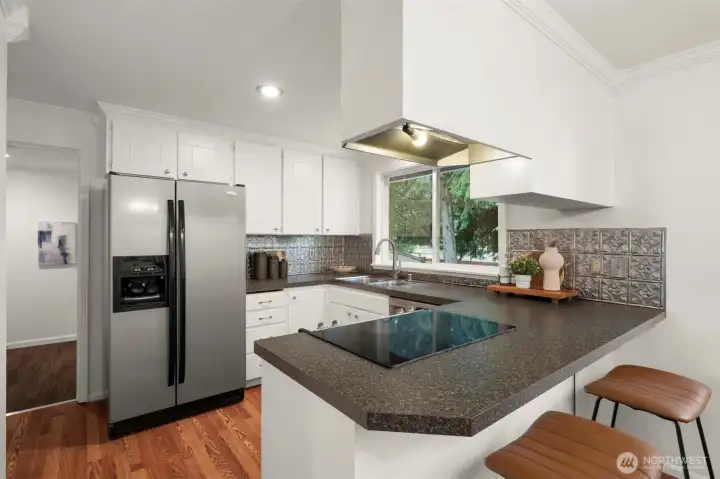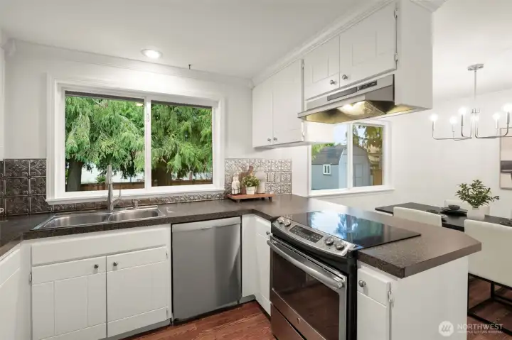 Charming 3-bedroom plus office, one-level home with a large, fully-fenced back yard and a 2-car garage. Enter your spacious living room with a wood-burning fireplace. Beautiful millwork--crown molding and wood-wrapped windows throughout. Efficient kitchen features all stainless-steel appliances and opens to the dining room. Enjoy the perfect home office with its own half bath. Plenty of room to entertain on the back patio. Freshly painted interior and exterior. Updated light fixtures. High-efficiency gas furnace. RV parking plus 2 storage sheds. Bonus built-in storage shelves in garage. Original cedar siding. All appliances included. Sellers are installing a new roof before closing! Walk to shops and restaurants. Home has been preinspected. Great opportunity at a great price!
