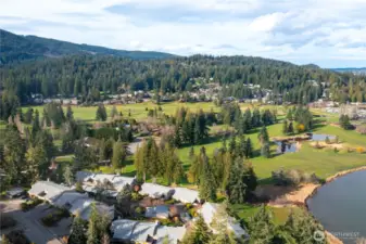 Enjoy stunning golf course and Lake Whatcom views from this single level, ground floor condo in Sudden Valley with no stairs for easy access. Located at 1 Morning Beach Dr #5, this home offers views all year round and an incredible lifestyle surrounded by nature and recreation. Inside, you will find fresh paint throughout, laminate flooring, built ins, a new range, and a cozy real wood burning fireplace. The second bedroom features a convenient Murphy bed for flexible use of space. The open living area is filled with natural light and positioned to take full advantage of the beautiful scenery. Step outside and enjoy everything Sudden Valley has to offer, including golf, lake access, beaches, miles of trails, mountain biking, pools, sports courts, dog park, and a welcoming community center. Whether you are looking for a full time home or a getaway, this is a rare opportunity for easy, stair free living with endless recreation right outside your door. Covered carport parking with storage. Lots of work recently done with these condos. New roof, siding, paint, and more.