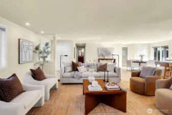 Immaculate rambler in the heart of the Edmonds Bowl—an ideal condo alternative with the ease of one-level living. Rebuilt in 2013 to ADA specifications, this home features updated systems throughout, including plumbing, electrical, windows, kitchen, baths, roof, and durable HardiePlank siding. Offering 1,602 square feet, the bright and open great room flows seamlessly from the kitchen, complete with granite slab countertops, pantry, and stainless-steel appliances. Step outside to a sunny, fully fenced backyard with a sprinkler system and a spacious Trex deck—perfect for entertaining. The generous primary suite boasts vaulted ceilings and a private ¾ bath. A well-appointed laundry and utility room provides abundant cabinetry and storage. A detached garage with alley access includes workshop space and plentiful additional off-street parking. Enjoy an easy stroll to downtown Edmonds’ vibrant restaurants, shops, and parks.