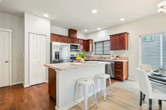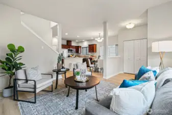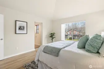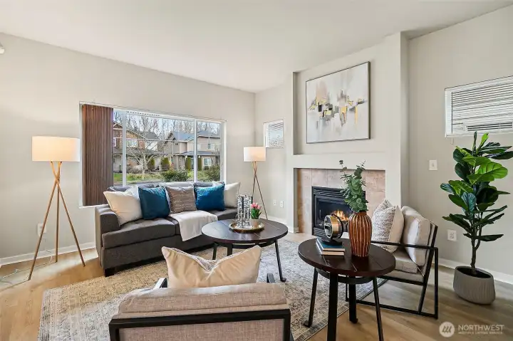 Welcome Home! This well maintained home features a great open concept of living, dining room and kitchen area with center island. All new hardwood floors and freshly painted Interior. Tile counter and stylish backsplash complements the nicely appointed cabinets. Master suite features vaulted ceiling, five piece bath with huge walk in closet. Laundry room and loft complete the upstairs. Spacious two car garage and tankless water heater, garage access is behind house where you'll find more parking. Community Park and River Trail are within walking distance.