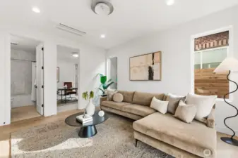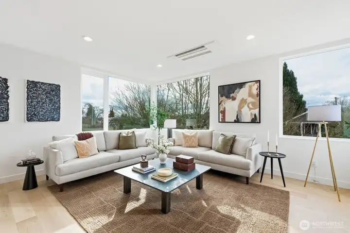 Stunning new construction thoughtfully completed by Coombes Development! Enjoy a spacious 4 bed + media/rec room, 3.25 bath home with expansive windows, high-end finishes, & quality design. Find a chef's kitchen with a generous island, quartz counters, high-end appliances, and plenty of cabinetry. The open-concept & light-filled living and dining rooms are a great space to entertain, and the powder room provides convenience. Up, find a luxurious primary with tall ceilings, a walk-in closet, and a spa-like bath. Two additional bedrooms, shared full bath, & laundry room up. To top it off, enjoy a private rooftop deck with breathtaking Sound and Olympic views for summer fun. The 4th bedroom & media/rec room with yard access on the lower level provide a great guest suite and flex space. The attached 1-car garage with direct access to the main living level is a rare treat. Additional luxuries include mini-splits for heating & cooling, heated bathroom floors, and EV-ready. Conveniently located near California Ave with shops, restaurants, & more at your disposal. 90 Walkscore and great access to the West Seattle bridge. This is it!