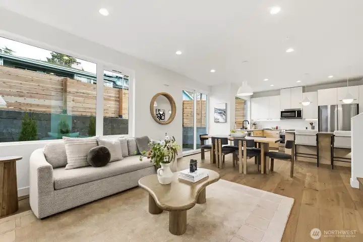 Stunning new construction thoughtfully completed by Coombes Development. This well-executed two-story home combines elevated finishes, quality design, & convenient living. Enjoy an open-concept main floor with expansive windows, a well-appointed kitchen, featuring high-end appliances + custom cabinetry & coveted main floor powder room. The private patio & yard extend everyday living. Upstairs, find two spacious bedrooms and en suite bathrooms, including the primary suite with vaulted ceilings, a walk-in closet, and a luxurious bathroom. Additional amenities include designated parking, additional storage, and mini-splits for heating & cooling. Conveniently located near California Ave with shops, restaurants, and more at your disposal. 90 Walkscore and easy access to the West Seattle bridge.
