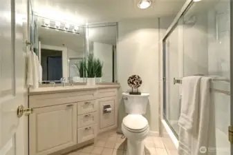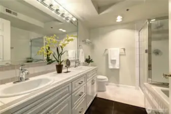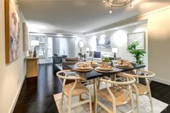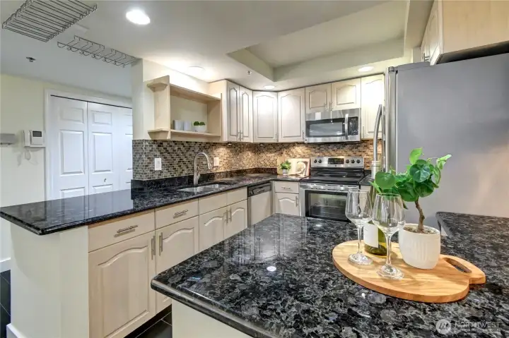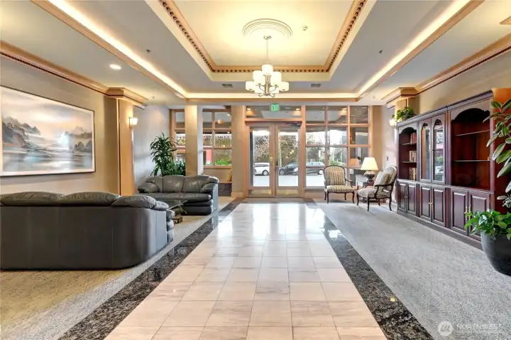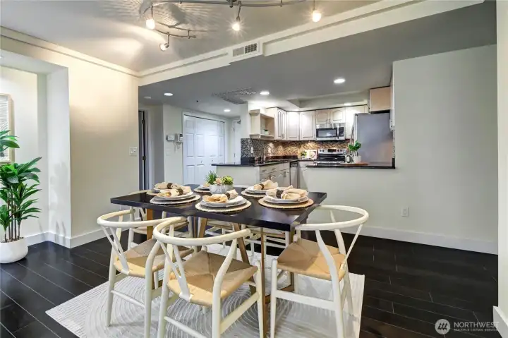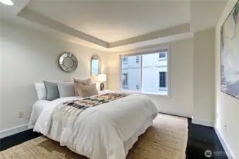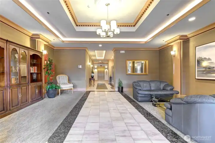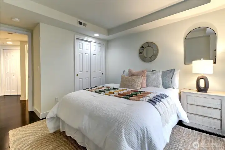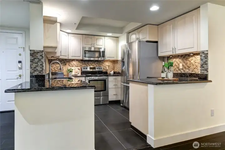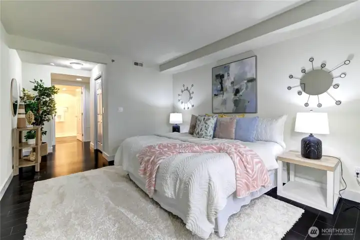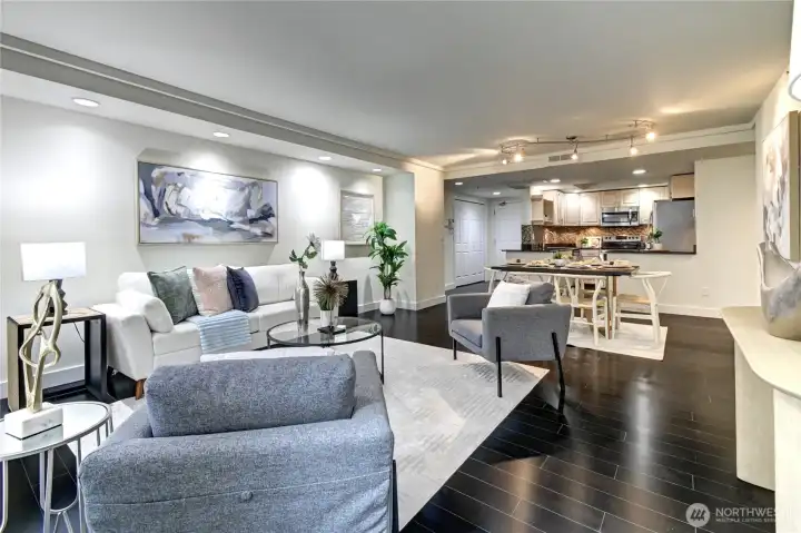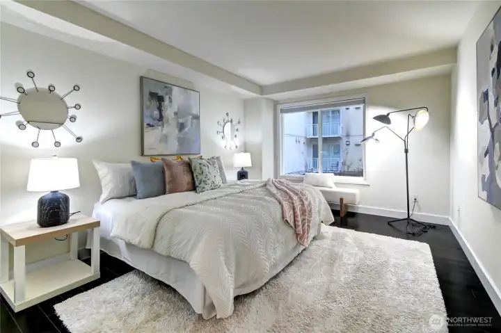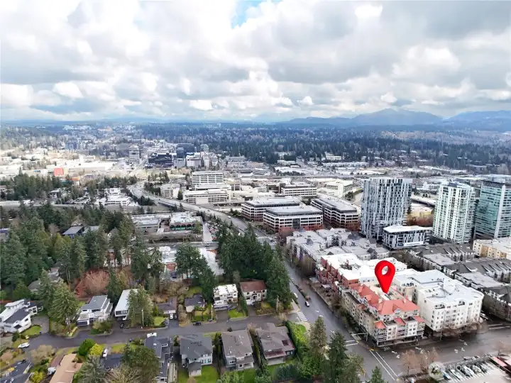Perfectly positioned in the heart of downtown Bellevue, this beautiful 2-bedroom, 2-bath condo offers exceptional convenience just across the street from the Bellevue Library and close to Bellevue Square, world-class dining, shopping and entertainment! Inside gorgeous wood laminate floors flow throughout the 1236 sq ft home, creating a warm and cohesive living space. The kitchen features granite countertops, a stylish tile backsplash, and ample cabinetry for everyday living and entertaining. The spacious living and dining areas provide flexibility and comfort. The generous primary suite includes a walk-in closet and private bath with a relaxing jetted soaking tub. A well-sized second bedroom and full bath offer excellent space for guests, a home office or additional living needs. Located in the award-winning Bellevue School District. A private deck looking over the courtyard, is a great place to relax. Enjoy a secure, locked building entry leading to a beautiful lobby with elevator access to the second floor. With no stairs necessary to enter the building or the condo, it offers accessibility. A gated garage provides one dedicated parking space, plus an additional locked storage unit for extra convenience. There is No Rental Cap! HOA covers building maintenance, water, sewer and garbage. Pre-Inspected and a 1-year home warranty, providing added peace of mind. This could be your perfect home in the ideal location that you have been waiting for in Bellevue...don't miss it!
