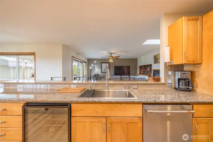 This thoughtfully designed, single-level residence seamlessly combines sophisticated modern amenities and a professional chef’s kitchen with a warm touch of rustic charm. The home is perfectly positioned on a picturesque property that offers breathtaking views of the surrounding mountains and water, complemented by a beautiful, easy-to-maintain yard.Upon entering, your eyes are immediately drawn to the stunning, three-sided see-thru propane fireplace that serves as a cozy focal point for the living space. This masterfully remodeled home features a true chef’s dream kitchen, offering abundant storage solutions, including high-end built-in full Subzero freezer and refrigerator units. Culinary enthusiasts will appreciate the premium 6-burner Dacor Dual Fuel Range and expansive counterspace that seems to go on for days. The location is a nature lover's paradise, situated within easy walking distance of Cline Spit and scenic county parks, and just a short 6-minute drive from the renowned Dungeness Wildlife Reserve. You are also only a quick trip away from local medical facilities, shopping centers, famous lavender farm tours, and the annual Sequim Sunshine Festival. For ultimate peace of mind, a brand-new roof was professionally installed in February 2026.