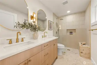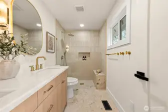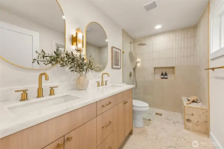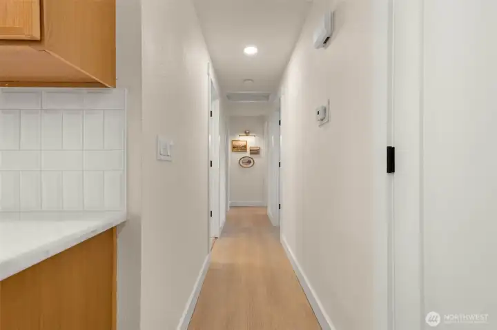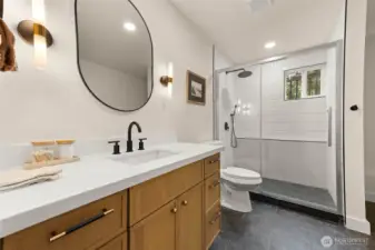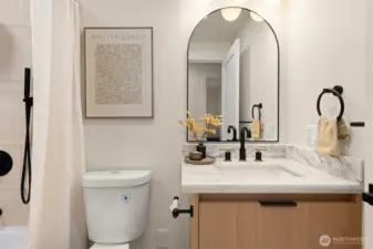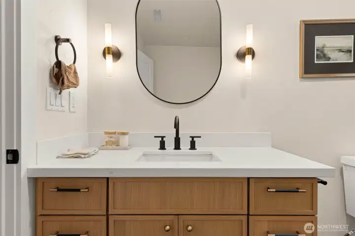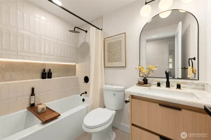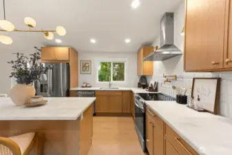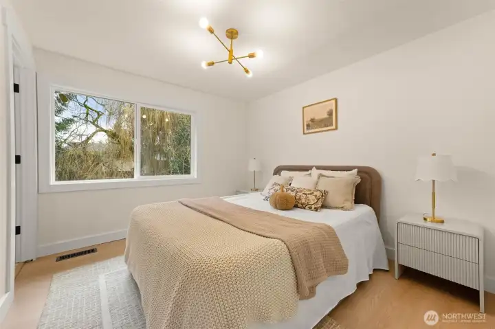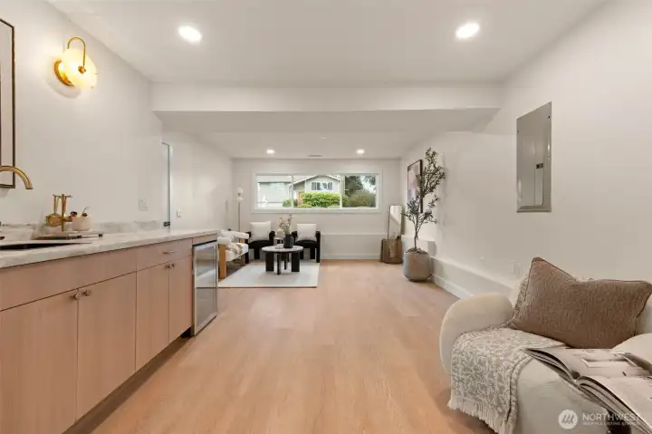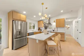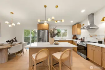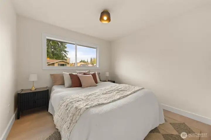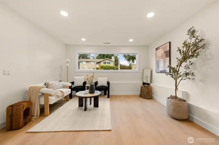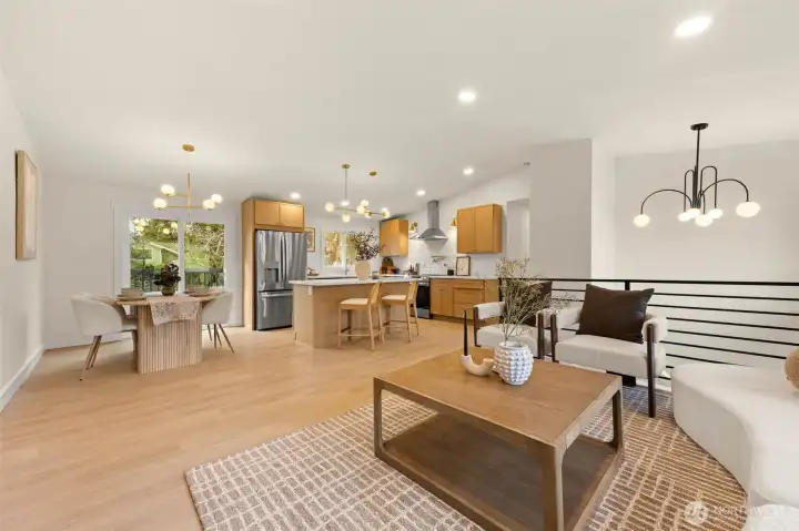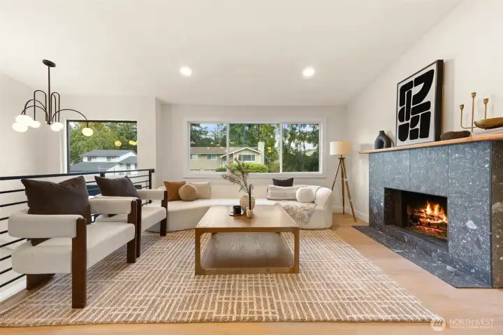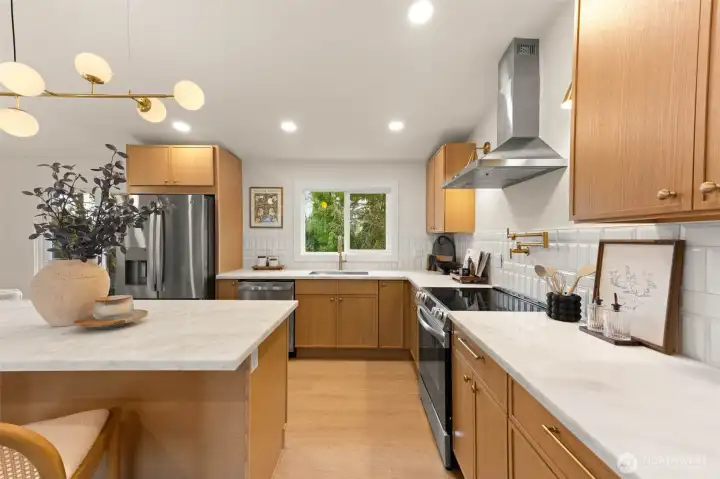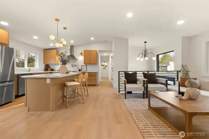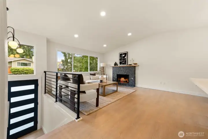 Tucked into Lynnwood’s Meadowdale community, this beautifully reimagined home blends tasteful architecture with a fresh, modern design. Set on a private corner lot, the home has been thoughtfully remodeled - creating a space that feels both elevated and effortlessly livable. Upstairs, vaulted ceilings and a fireplace anchor the light-filled living room, while the dining area flows seamlessly into a fully renovated kitchen featuring quartz countertops, custom cabinetry, and stainless appliances. Clean lines, warm finishes, and new flooring throughout give the home a cohesive, contemporary feel. The lower level offers a spacious bonus retreat - ideal for movie nights, a creative studio, or a quiet work-from-home setup. Each bathroom has been stylishly updated, the furnace is brand new, and fresh interior and exterior paint add to the home’s polished presentation. Outside, a fully fenced backyard feels private and inviting, with room to gather, garden, or unwind. All just minutes from I-5, Alderwood’s shopping and dining, Light Rail access, and within the highly regarded Edmonds School District — a home that pairs thoughtful design with everyday convenience.