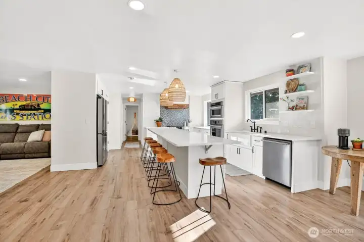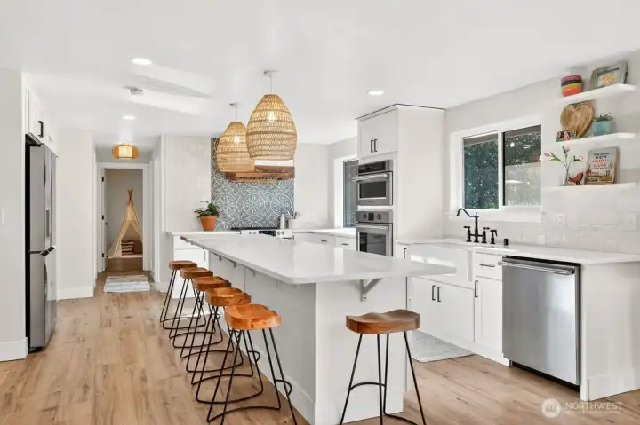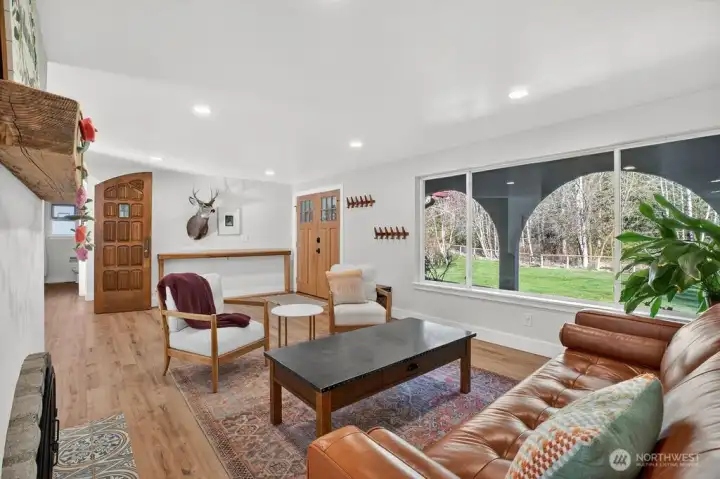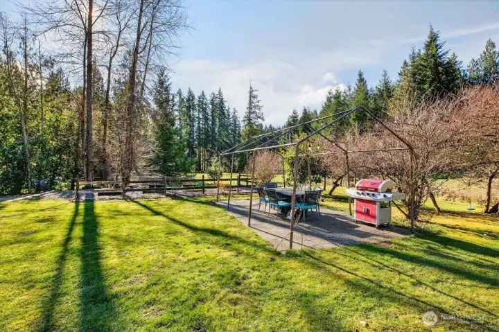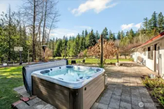 Welcome home to timeless Northwest charm paired with effortless modern living. This beautifully maintained rambler sits on more than an acre across from the scenic Lake Youngs trail system, offering year-round access to nature while remaining close to everyday conveniences. With four spacious bedrooms, the home provides flexibility for gathering, working remotely, or simply relaxing. The private primary suite offers a peaceful retreat, featuring a beautifully tiled shower and generous closet storage. Designed for connection and entertaining, the remodeled kitchen anchors the home with a stunning 12-foot island, double ovens, and expansive workspace ideal for everyday living or special celebrations. Attic storage adds practical versatility, while thoughtful updates blend comfort with classic character. Step out to a private retreat created for every season. The fenced yard includes a patio and a versatile new sport court — enjoy a full-size pickleball game or a half-court basketball setup complete with an NBA three-point line. Relax under the stars in the hot tub or by the fire pit. Mature, low-maintenance landscaping, raised garden beds, open play areas, offer room for entertaining, recreation, or quiet moments alike. A private well and abundant space provide both independence and opportunity. Whether hosting friends, enjoying time with loved ones, or embracing the tranquility of the outdoors, this inviting property is a place where lasting memories come naturally.