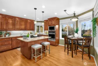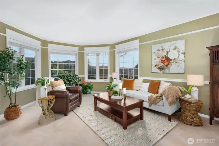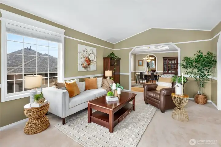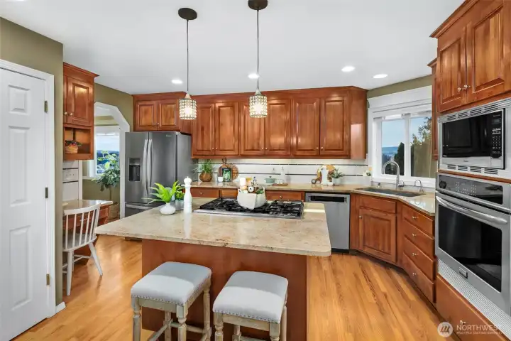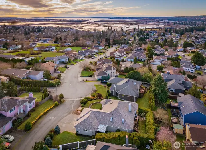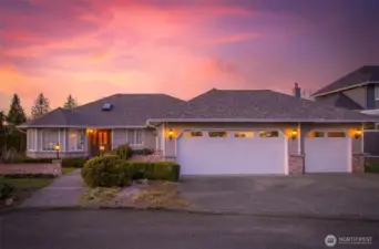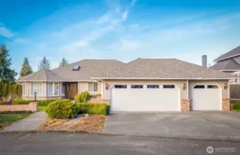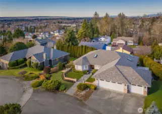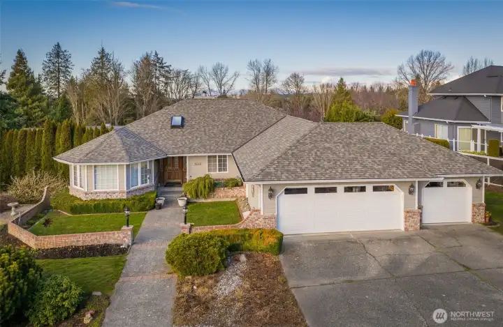 Nestled on a hilltop in Marysville, this home offers peaceful cul-de-sac living with views of the Puget Sound and surrounding mountains, along with quick access to I-5, Highway 9, local parks, lakes, and the Centennial Trail. Just off the entry, a sunlit living room flows seamlessly into a formal dining space, creating an inviting layout for hosting lively gatherings. The kitchen features abundant cabinetry, a spacious center island with seating, and a bright breakfast nook overlooking the backyard. A secondary living room centered around a cozy fireplace sets the scene for relaxed movie nights at home. The primary suite serves as a private retreat with direct deck access, a five-piece ensuite, and a generous walk-in closet. Two additional bedrooms provide flexibility for a home office or guest accommodations, while a nearby full bathroom and laundry room with garage access streamline daily routines. The spacious three-car garage offers room for hobbies, extra storage, or parking out of the PNW rain. A large crawl space and utility room add convenience for maintenance and future potential, including the opportunity to expand the home’s finished square footage.