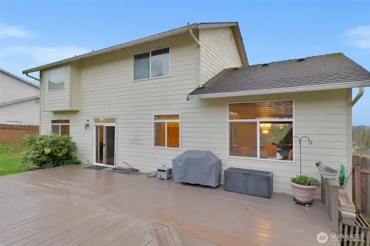 Beautifully maintained 4-bedroom, 3-bath home situated on an oversized 0.42-acre lot offering space, comfort, and convenience. The open floor plan features vaulted ceilings and abundant natural light throughout. The kitchen includes granite countertops, stainless steel appliances, and flows seamlessly into the family room with a cozy gas fireplace. Glass doors open to a large entertainment-sized deck overlooking the fully fenced and manicured backyard, perfect for gatherings or relaxing outdoors. The spacious primary suite features a stunning 5-piece bath. Ideally located just off 84th St., providing easy access to shopping, dining, parks, and everyday amenities in every direction.