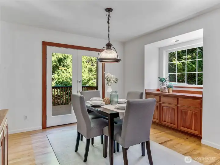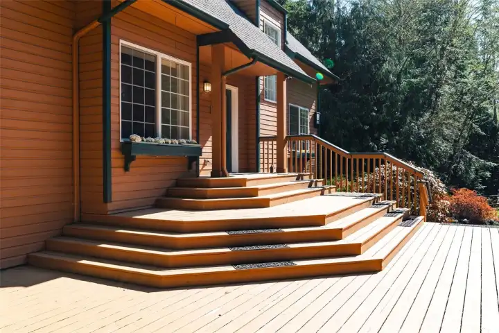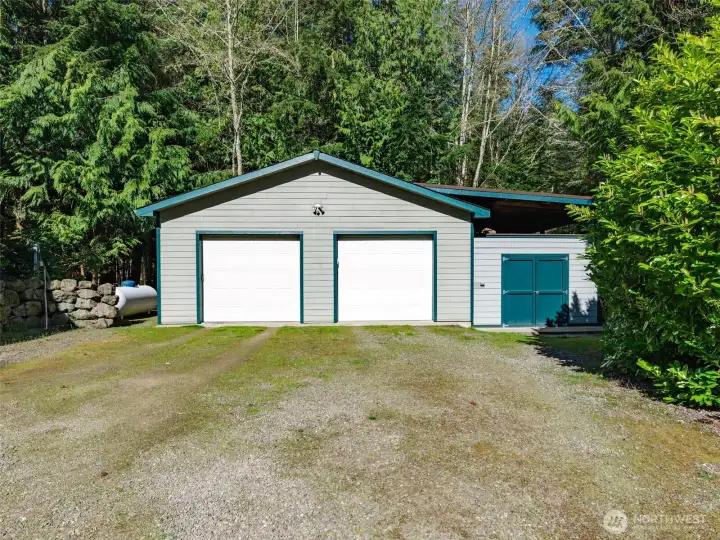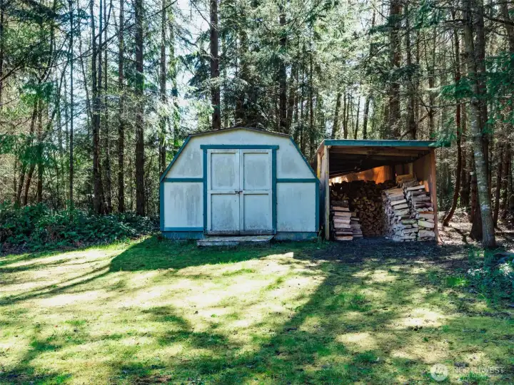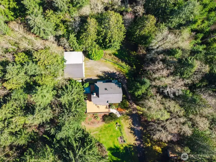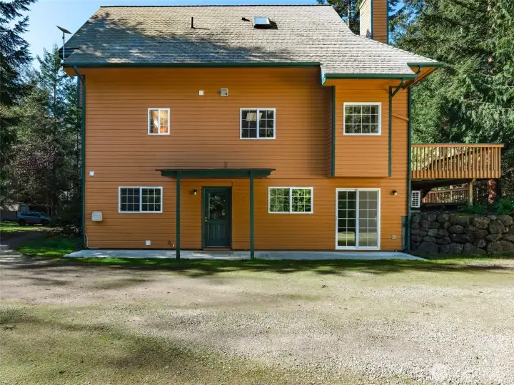 Gorgeous 5 acre spread located at the end of a quiet country road for privacy. Roomy 3 bedroom, 3.5 bath, two story home with fully finished day-light basement. Large wrap-around deck to enjoy your sunny days and quiet evenings. Have a bbq on the wide deck as the dining room opens onto the deck, which is hot tub ready. Partially cleared acreage but surrounded by woods. The house has cathedral wood ceilings in the living room, with a wood stove and window seat adjacent to tall windows. Open kitchen to dining area. The primary bedroom/bath is on main floor with 2 more bedrooms and a bath on second floor. Daylight basement is a greatroom space; perfect for a media room or work from home office with separate entrance. Oodles of storage! 2 car garage with shop in close proximity to home plus additional outbuildings; including wood shed, another shop or storage/garage. Plus an additional 960 sq ft of finished space. Very well maintained property. Lots here to love!
