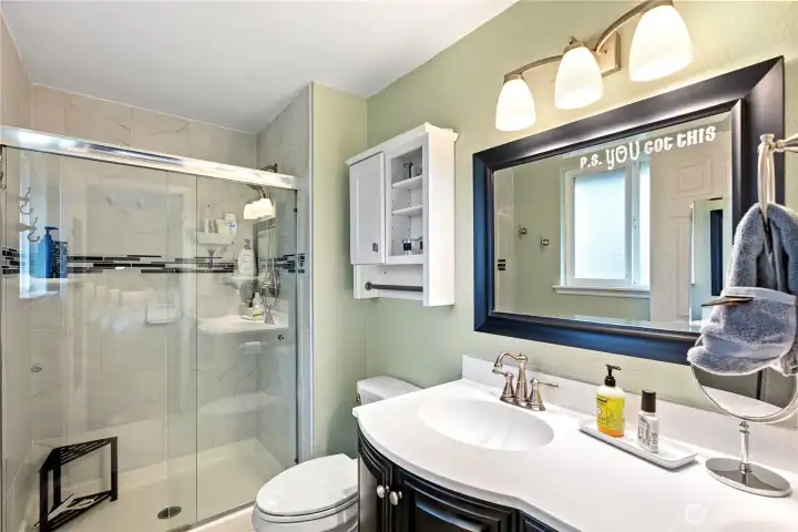 Schedule your private showing today to tour this wonderful 3 bedroom home, centrally located in Port Orchard! Upstairs, you’ll find a spacious, updated kitchen featuring white cabinetry and beautiful granite countertops. The kitchen flows seamlessly into the dining area and bright living room, creating an open and inviting layout perfect for everyday living and entertaining. A cozy fireplace anchors the living room, keeping things warm and comfortable all winter long. Through the sliding glass door to a large deck with stairs leading down to the fully fenced backyard—ideal for gatherings, pets, or simply enjoying the outdoors. The primary bedroom offers a private en suite bath with a tiled shower. Downstairs, you’ll find a generous family room, a convenient laundry room, and a ¾ bath, providing flexible living space to suit your needs.