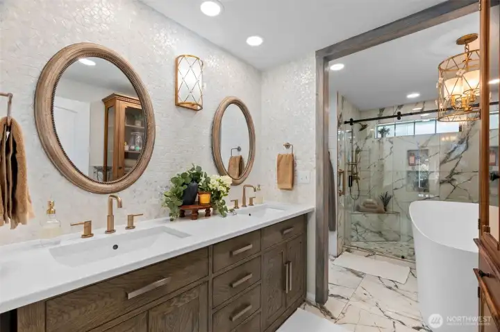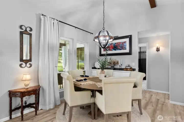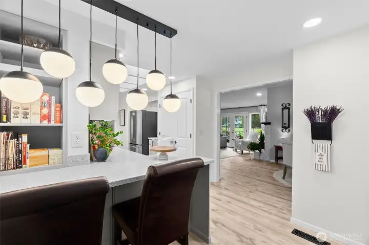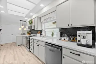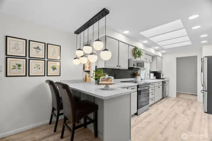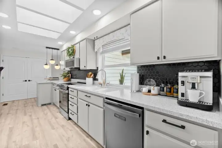 Wake up to open fairway views and end the day with sunset skies over the 7th green! This completely remodeled single level home at Capitol City Golf Course blends comfort, function and location in one inviting package. Everything has been upgraded: appliances, furnace, AC, windows, floors, skylights, roof, paint and landscaping. Think Restoration Hardware meets Pottery Barn! A thoughtful split bedroom design provides privacy with flexibility for work or hobbies. Vaulted ceilings and a gas fireplace warm the living room, where expansive windows bring the outdoors in. The updated kitchen with custom tile, Corian counters, custom storage are all added for convenience. The primary suite features double vanities, heated floors & towel racks with a tub to die for. A walk in closet with a second dedicated laundry area help create this spacious retreat. Step onto the back deck to enjoy views of the public course, no membership required. An oversized two car garage allows room for storage, your work bench or a golf cart, all just minutes from shopping, parks and commuter routes. Don't let this go!