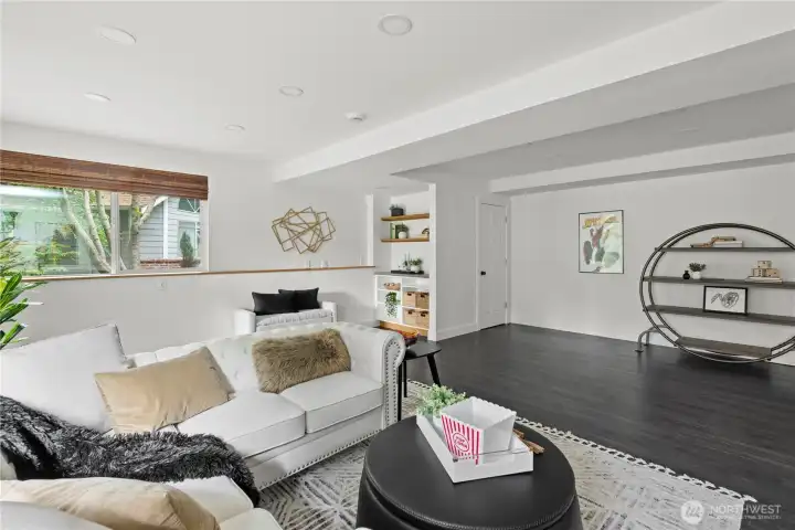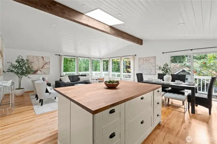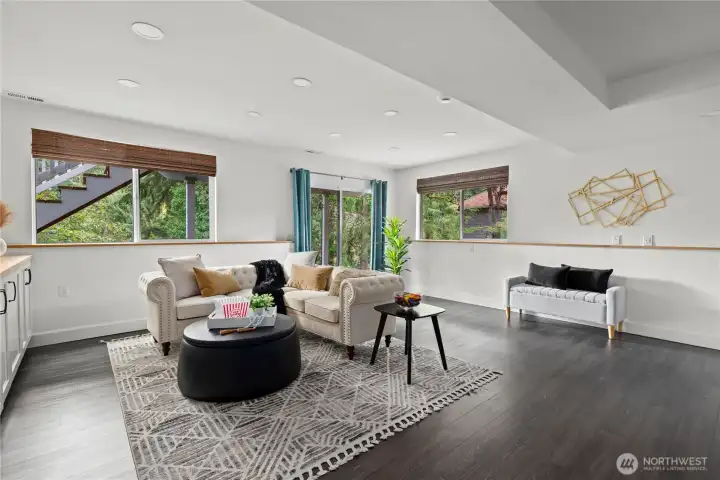The Edmonds home you've been waiting for! Nestled back away amongst the trees and down a quiet dead end, this daylight rambler offers exceptional privacy. Morning sun pours in from the wall of windows into the great room. Open kitchen, dining and living space all right there, w/ access to the spacious wrap around deck. 3 bedrooms and 2 bathrooms also upstairs. A beautiful and bright lower level with another huge living room, additional 3 bedrooms, bath and laundry. Smart remodel that provides plenty of space for all sort of living options and surrounded by beautiful terraced gardens. Ideal location on the edge of Yost Park, just a few minutes from downtown Edmonds. Large two car garage with spacious driveway parking. Seller Inspected.