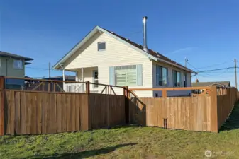 Timeless 1924 Craftsman Charmer with Mountain and Water Views – Move-In Ready! Nestled on an oversized, fully fenced yard that offers privacy and endless outdoor possibilities, this home captures the essence of classic craftsmanship while providing the comforts today's buyers crave. Step inside to warm Fir flooring and a cozy freestanding woodstove that anchors the living space—ideal for chilly evenings and year-round ambiance. The main floor has two nice sized bedrooms, an updated bathroom which retains the beautiful clawfoot tub and the heart of the home shines with a beautifully updated kitchen featuring modern appliances, ample counter space, and stylish finishes. Sip your morning coffee from the upstairs bedroom balcony overlooking the harbor, straits and the lights of Victoria. The covered back porch (which used to be the laundry room) adds additional space to get creative with. A detached garage was added in 2006 and was set up with a 3/4 bath and laundry facilities.
