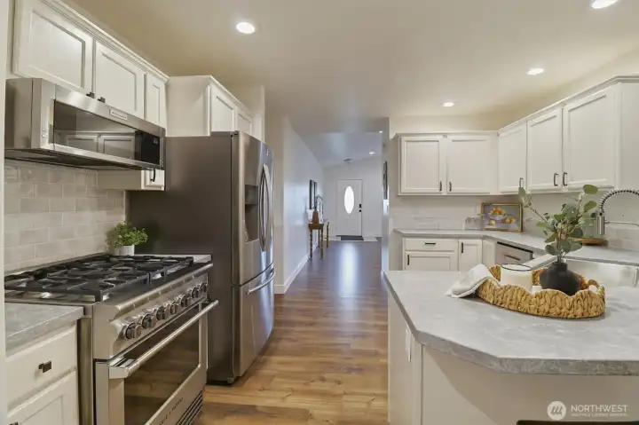 Situated in a cul-de-sac, this single level home offers a functional and flexible floor plan with two separate living rooms, providing space for everyday living, entertaining, or multi-use needs. The home features a gas fireplace, a chef’s oven, central AC and updated lighting throughout. Living areas are designed to allow comfortable separation while maintaining a practical flow. Located within walking distance to Birch Bay, the setting supports a coastal lifestyle with easy access to walk to birch bay or enjoy an ice cream at the C-shop!