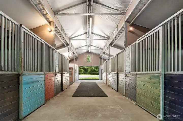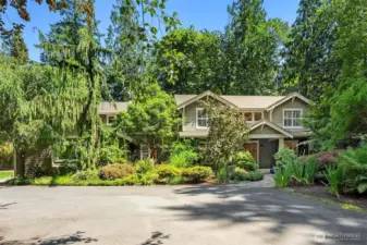 Set on 5.23 breathtaking acres down a private road, this gorgeous Northwest retreat caters to both the equestrian enthusiast and those who simply appreciate privacy. A charming covered front porch greets guests and opens to a formal entry, complemented by an elegant living room with fireplace and formal dining room with built-in buffet. The impressive great room is the heart of the home featuring a granite chef’s kitchen, soaring 2-story family room with a 2-way fireplace, expansive windows and French doors that open to the covered entertainment patio. A main-floor den with fireplace provides the ideal work-from-home or study space. The romantic primary suite offers a private sanctuary with fireplace, dual walk-in closets, and a spa-inspired 5-piece bath. The 2nd floor vaulted bonus room adds flexibility. Impressive equestrian amenities include a 5-stall barn with wash rack, feed storage and tack room with wash basin; an outdoor arena with stadium lighting and rubber footing; 3 pastures (one with loafing shed); and a dedicated driveway with circular drive and ample trailer parking. 3-car garage with storage and large parking pad, perfect for basketball or pickleball. Beautifully landscaped grounds highlighted by expansive lawns, fruit trees, enchanting stone patio, and a spectacular water feature cascading from the upper terrace into a tranquil fish-filled pond - an unforgettable setting for summer gatherings and peaceful everyday living. Highly sought after schools.