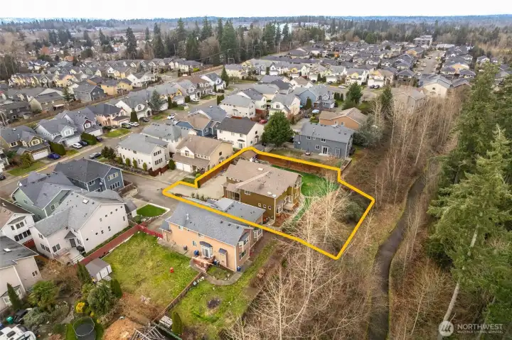 First time on the market! With over $90,000 in builder enhancements, this home is extraordinary. Every space tells a story, from the coffered ceilings and architectural pillars to rich mahogany trim and bay windows that frame peeking Mountain Views. Set on an oversized 1/3 acre lot backing directly to protected greenbelt, the yard is a true standout. Significantly larger than most homes in the neighborhood, this expansive, private setting offers space that is increasingly rare to find. Wide open lawn, natural privacy, and uninterrupted greenbelt views create a setting that demands to be enjoyed. It is a yard designed for entertaining, play, and peaceful retreat all at once. Fully remodeled throughout, this home has been completely transformed with a stunning brand new kitchen, beautifully redesigned bathrooms, new flooring, and fresh interior and exterior paint. The updates are cohesive and elevated, creating a home that feels brand new while honoring its original craftsmanship. Light pours through the living room window above the fireplace, bringing warmth and presence to the main living spaces. Step onto the new Trex deck and take in the scale, privacy, and tranquility of the lot. A non-conforming 12x16 shed that has been grandfathered in adds flexibility for hobbies, storage, or creative use. Designed with intention. Fully reimagined. Offered for the first time. A rare opportunity to own something truly special.