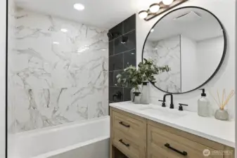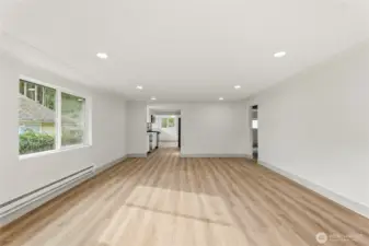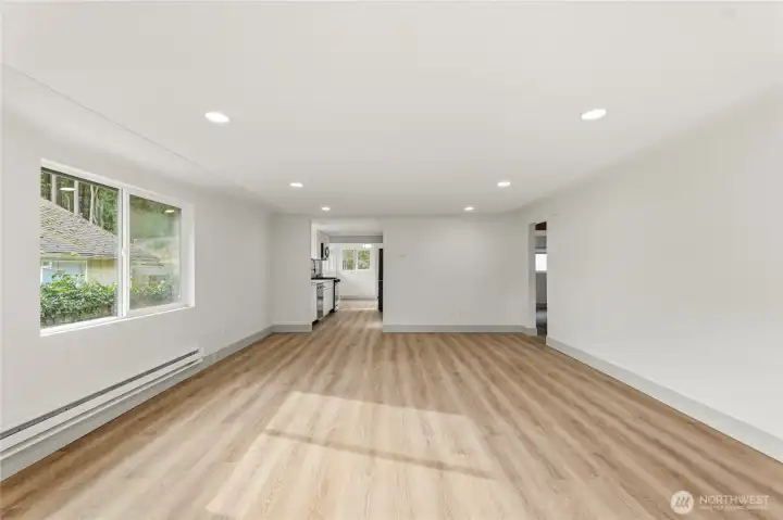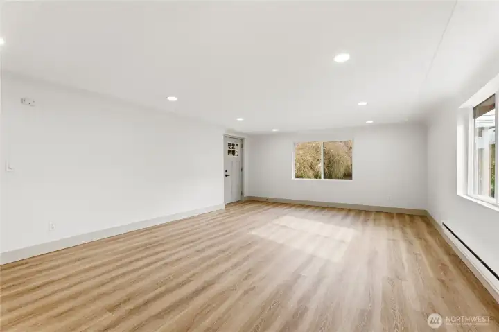Updated three bed one bath home featuring a new roof and fresh interior and exterior paint. Bright kitchen with white shaker cabinets, white quartz countertops, matching white range, and stainless steel appliances. LVP flooring throughout and recessed lighting add a clean, modern feel. Finished basement includes a bonus room offering flexible use options. Detached garage with new roof. Easy to maintain yard offers space for outdoor enjoyment, including a fire pit area. Ample driveway parking.