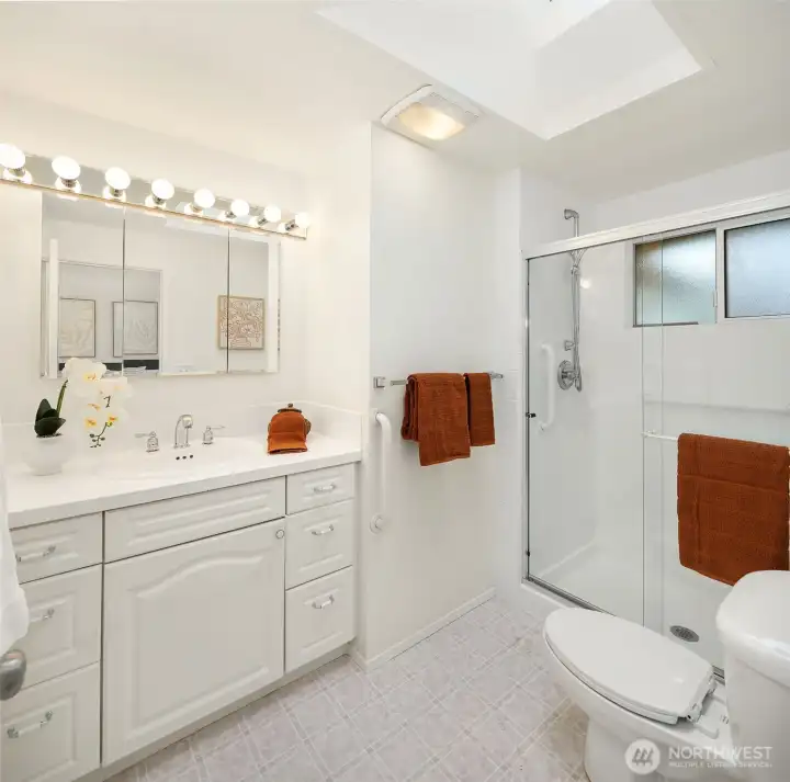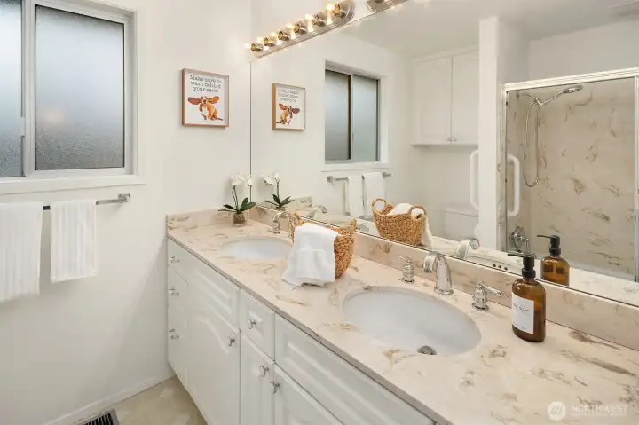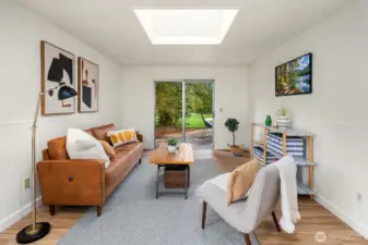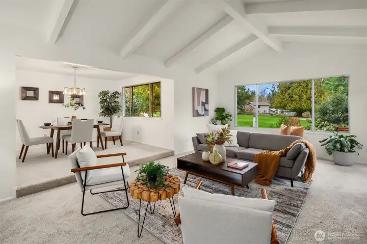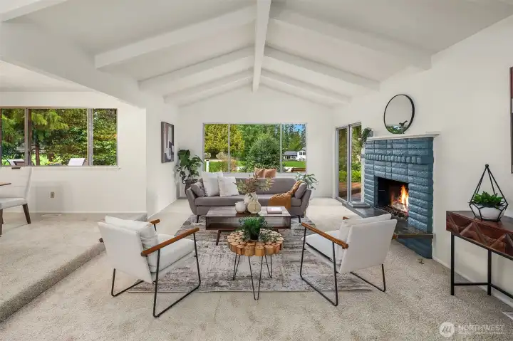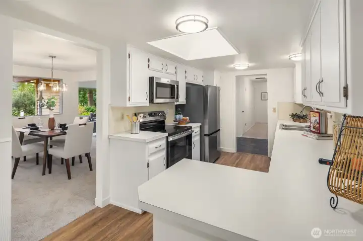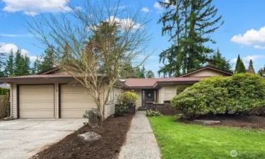 Stylish Rambler on the Golf Course in Brae Burn! Light & bright interior with vaulted ceilings, skylights and abundant windows with views of the 4th fairway. New hardwood style LVP flooring, new carpet, new paint & lighting. Charming courtyard entry welcomes you to the interior that flows seamlessly to the main living areas. Living room features exposed beam vaulted ceilings, cozy fireplace & access to back deck; opens to dining room for a light & airy floor plan. Kitchen offers new stainless appliances kitchen, skylight & new flooring. Casual eating nook opens to spacious family room with another skylight and easy access to the backyard to make entertaining a breeze. Primary suite has private 3/4 bath and slider to deck + two additional bedrooms & full bath. Sunny yard with extensive decking that runs the entire back of the house. All with peaceful golf course views. Located in a highly desirable Brae Burn neighborhood which is built around a private 9-hole executive golf course plus a clubhouse with swimming pool. Ideal location is steps away from Microsoft, top-rated schools, shopping, dining, Idylwood waterfront Beach Park, Lake Sammamish & Marymoor Park. Easy access to freeways, downtown Bellevue and Seattle.