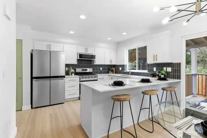Beautifully remodeled 3-bedroom, 2.5-bath home in Marysville near Cedarcrest Golf Course. This property has undergone an extensive interior renovation, offering a clean, modern feel throughout. The fully updated kitchen features brand-new appliances, cabinetry, and finishes, flowing seamlessly into refreshed living spaces with new paint, doors, and windows. All bathrooms have been completely redone, including a new primary shower and updated secondary bath, along with new vanities and fixtures. Major system improvements include a new furnace, heat pump, tankless water heater, new ducting—providing efficiency and comfort year-round. Additional upgrades include all new flooring, a new automatic garage door, fresh exterior paint, and a newly built composite deck. The yard has been hydro-seeded and professionally landscaped, creating a clean and inviting outdoor space. A true turnkey opportunity with the big-ticket items already done.