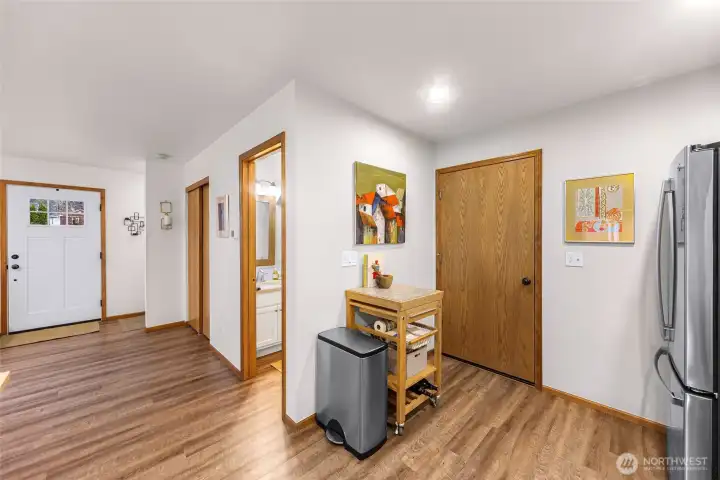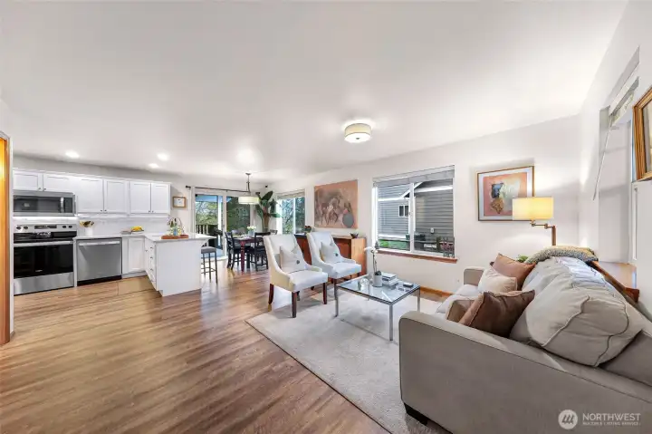 Meticulously remodeled Blaine retreat blending modern luxury & PNW living! The home lives large. The open-concept main floor features elegant lighting, a 1/2 bath & a stunning kitchen with quartz counters, undermount sink & artisan tile. Step out to the covered back porch and enjoy a pond view while dining. French doors open to a 200 sq ft bonus room with its own A/C mini-split (2022)—a perfect office or guest suite! Past your backyard gate, a wooded trail winds by scenic ponds; stroll 5 mins to the beach or walk the other way to the neighborhood park. Upstairs offers a flexible den, 3 beds & 2 full baths, including a primary en suite with a stunning marble double vanity. With nearly $80k in upgrades, enjoy ultimate peace of mind: roof & exterior paint (2020), whole-house A/C (2017), furnace (2016), newer appliances & generator pre-wiring. A rare, turn-key opportunity! Comprehensive update list available. Mortgage savings may be available for buyers of this listing.