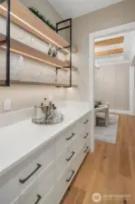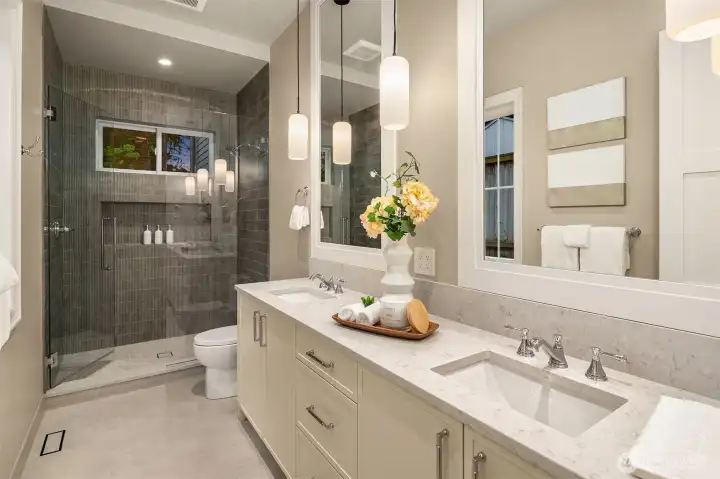 Welcome to The Hatteras, the latest architectural masterpiece from premier luxury builder Mirikeen Homes. Perfectly positioned in the heart of Enatai on a private 10,500 sq ft lot, this 5,802 sq ft custom Cape Cod home blends timeless design with modern sophistication. Designed for both grand entertaining and intimate living, the chef’s kitchen is complemented by a full prep kitchen, oversized walk-in pantry, and elegant butler’s pantry. The two-story great room stuns with soaring ceilings, custom millwork, and a statement gas fireplace that anchors the space with warmth and refinement. Thoughtful details—like the charming custom nook tucked beneath the staircase—set this home apart. The primary suite is a true sanctuary, complete with a private coffee bar, fireplace, treehouse-inspired sitting room, expansive walk-in closet with direct laundry access, and a spa-caliber bath adorned with Brizo fixtures. Every inch showcases impeccable craftsmanship—from bespoke ceiling treatments and millwork to designer lighting and exquisite tile selections. A spacious bonus room with full wet bar invites effortless entertaining, while the private theater with 98” screen creates the ultimate luxury retreat. A rare opportunity to own a one-of-a-kind residence in one of Bellevue’s most coveted neighborhoods.