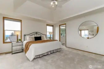 Remarkable Home! Nestled in the Upper Harbor Ridge community of Browns Point, this is a truly expansive 3-bedroom, 2.5-bath view-home offering an outstanding open floor plan and wonderful Puget Sound views. Positioned on a private corner lot along a quiet street with few neighboring homes, the setting provides quietness and privacy. This home is full of light, has tall ceilings and a beautiful solid wood staircase adding to the warm and inviting atmosphere. The generously sized primary suite is a true sanctuary, featuring stunning updates, a beautifully spa-like remodeled bath, and an additional attached room that is ideal for a home office, nursery, or hobby space — all complemented by incredible views. Enjoy outdoor living on the spacious deck and a fully fenced yard with mature landscaping, complete with a hot tub, perfect for relaxing evenings or entertaining guests. Move-in ready! With Modern and thoughtful upgrades including kitchen appliances, and beautiful bathrooms. This is a great opportunity to own an exceptional view home in upper Harbor Ridge.