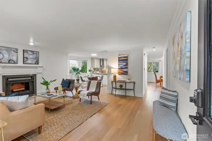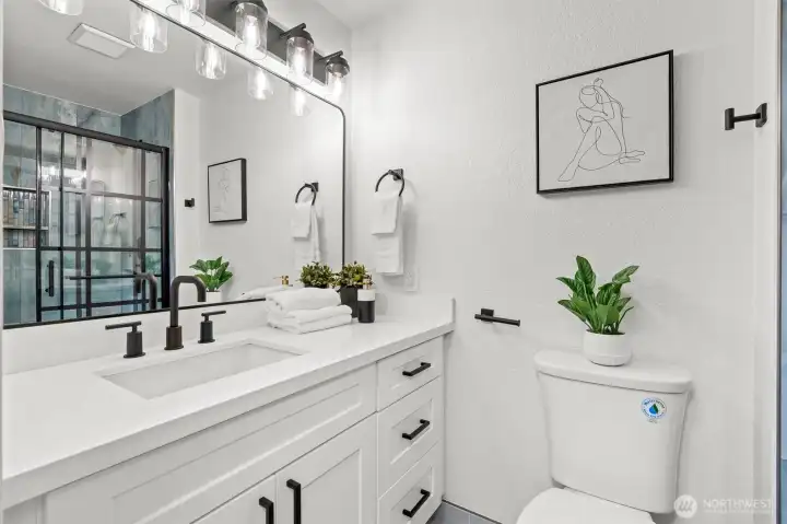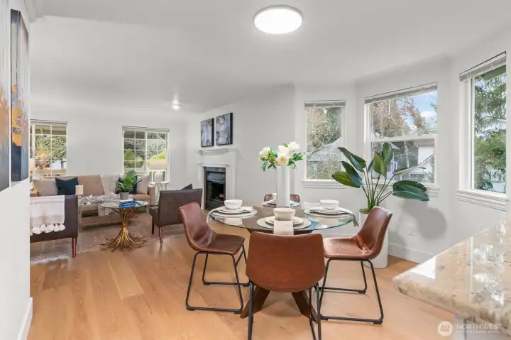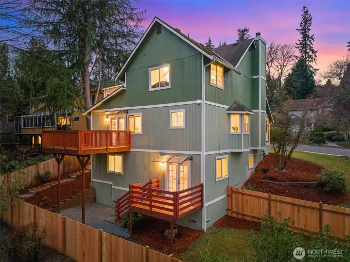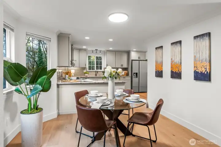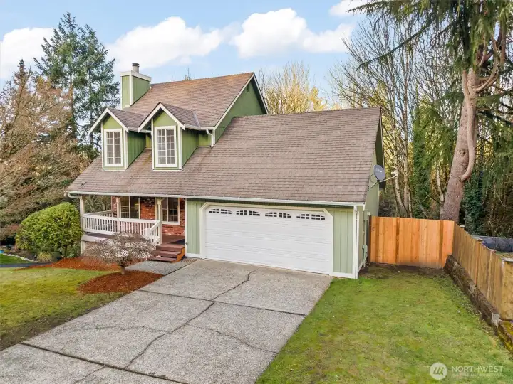 Tucked at the end of a quiet cul-de-sac, this home offers something that’s getting harder to find in Bellevue: privacy. No through traffic. No homes stacked behind you. Just trees and open greenbelt. Inside you’ll find 4 bedrooms, 3.5 bathrooms, and 2,500 sq ft of well-designed living space. Wide-plank wood flooring runs throughout the main level, connecting the living, dining, and kitchen areas into one cohesive flow. The kitchen is updated with granite slab countertops, full-height tile backsplash, stainless steel appliances, gas range with hood, undermount sink, and soft-close cabinetry. Upstairs features well-sized bedrooms, including a spacious primary suite with vaulted ceilings and peaceful greenbelt views. All bathrooms are refreshed with quartz counters, shaker vanities, black fixtures, and tiled surrounds, including a glass-enclosed walk-in shower and full tub/shower combo. The dining area opens to a private deck overlooking the trees, a natural extension of the living space. Two-car garage. Established neighborhood. Close to top Bellevue schools. Minutes to Vasa Park and easy I-90 access. Space. Privacy. Location. Without compromise.