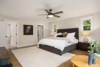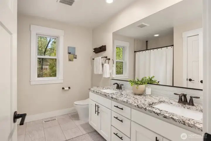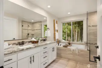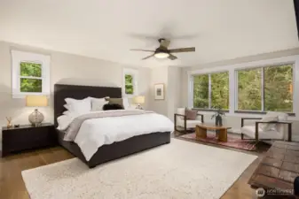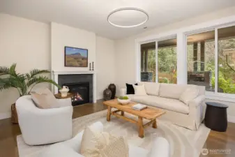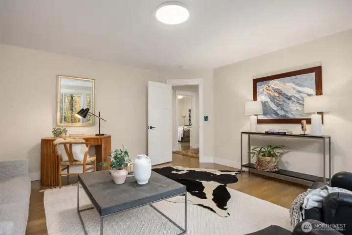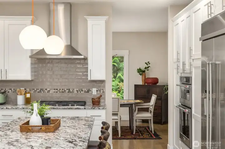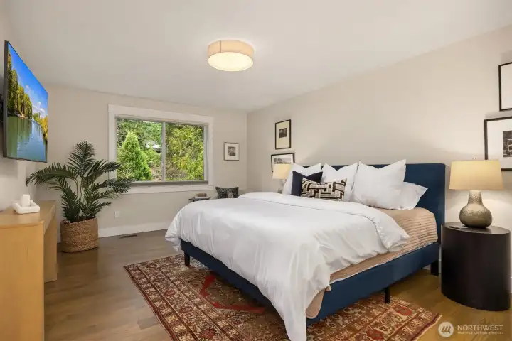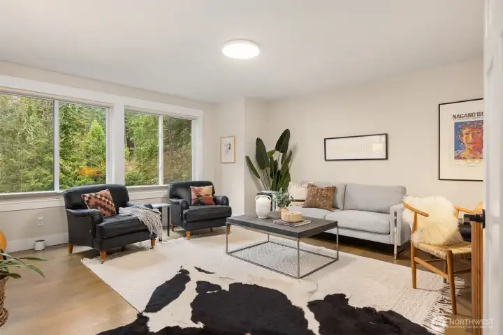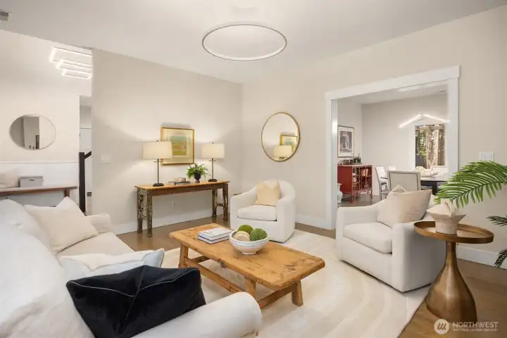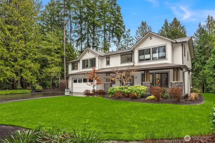 Tucked on coveted Baker Hill, this exceptional property offers the perfect blend of privacy, proximity, and refined Northwest living. Just moments from beloved Point White Pier, enjoy easy access to waterfront strolls, paddleboarding, and sunset views—an everyday luxury. Set on a beautifully parked-out acre, this 4-bed, 4-bath residence lives better than new, with elevated finishes and thoughtful, high-design details throughout. Clean architectural lines, curated materials, and intentional sightlines create gallery-like moments—perfect for showcasing an art collection and statement pieces. The aesthetic strikes a rare balance: sophisticated yet welcoming, modern yet warm. The versatile floor plan features dual primary suites—ideal for multi-generational living, extended guests, or evolving lifestyle needs. A full upstairs living area offers additional flexibility for a media lounge, home office hub, or private retreat, creating separation without sacrificing connection. Designed with both entertaining and everyday comfort in mind, the layout seamlessly blends open-concept gathering spaces with defined rooms for intimacy and focus. The covered, heated patio extends your entertaining season year-round—perfect for cozy winter evenings or summer soirées surrounded by lush, mature landscaping. Practicality continues with an extended 3-car garage, and generous additional parking for a boat or RV. Wired for a generator, the home offers peace of mind alongside its refined design.