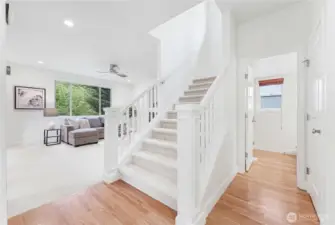 Discover serenity in this quality-crafted 4 bedrooms, 2.5 bath home with a main floor den/5th bedroom, and an oversized bonus room—offering flexible use as additional bedrooms, nestled on a private lane off a quiet cul-de-sac. Backing to lush greenbelt, this residence offers exceptional privacy in the highly sought-after Education Hill while minutes from Microsoft, 520, and neighborhood parks. Clara Barton Elementary and Rosa Parks Elementary (Optional). Freshly enhanced with new interior and exterior paint. New carpet on the main floor. Features oak hardwood floors, central A/C, an extended deck overlooking natural surroundings, and a side yard with low-maintenance turf, perfect for outdoor activities. Experience premier Pacific Northwest living with tranquility and convenience in desirable Monticello Estates.