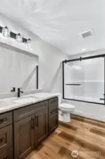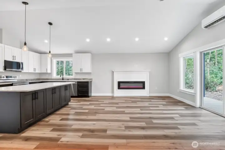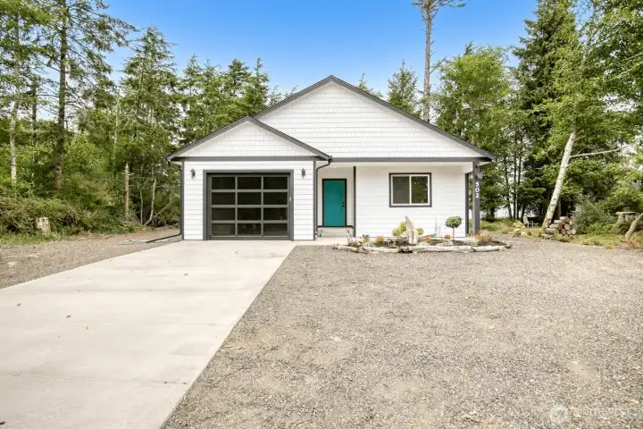 Brand New Home in Ocean Shores! Tucked into a quiet residential neighborhood just one block from the Community Club Outdoor Pool & less than a mile from the sandy shoreline of the Pacific Ocean, this newly constructed home offers the perfect blend of coastal lifestyle & modern comfort—ideal as a full-time residence or beach retreat. Designed with quality & efficiency in mind, the home features a bright, open Great Room with vaulted ceilings, an electric fireplace & a ductless mini-split HP for year-round heating & cooling. The seamless open-concept layout creates an easy flow between living, dining, & kitchen spaces. The kitchen is beautifully appointed with quartz countertops, a spacious island with bar seating, abundant cabinetry, & a stainless steel appliance package—delivering both style & functionality. The Primary Suite provides a private escape with a spacious walk-in closet, dual vanity sinks, & a step-in shower with custom glass door. A guest bedroom & full bathroom are situated on the opposite side of the home, offering separation & comfort for visitors. A dedicated laundry room adds convenience. Additional highlights include an oversized one-car garage with wiring in place for an EV charging plug. The backyard is fully fenced with 6-foot privacy fencing, creating a secure & comfortable outdoor living space. Photos are of a previously built home with the same floor plan; finishes & details will vary. Estimated completion is the end of March 2026.