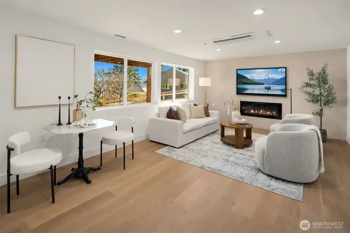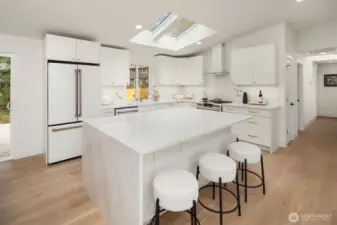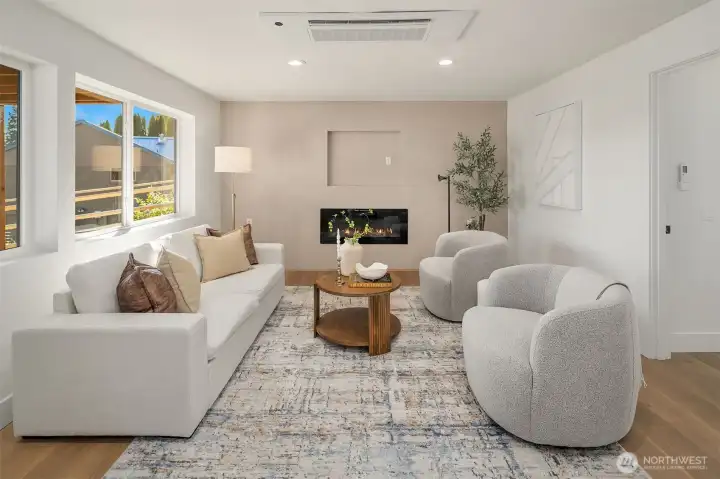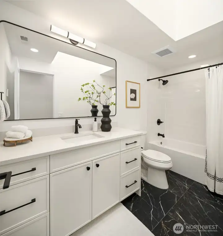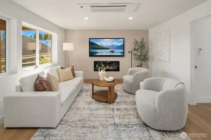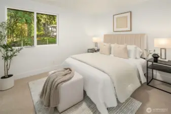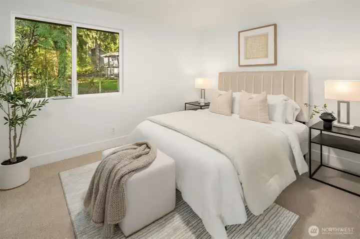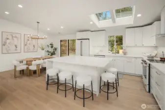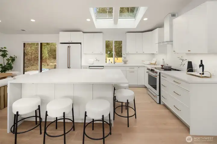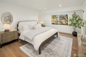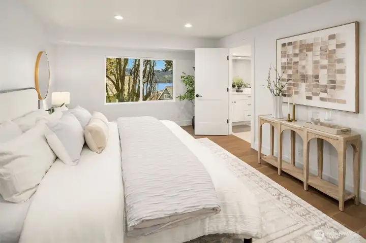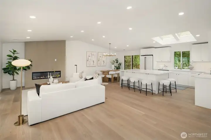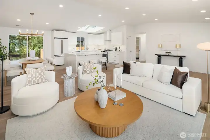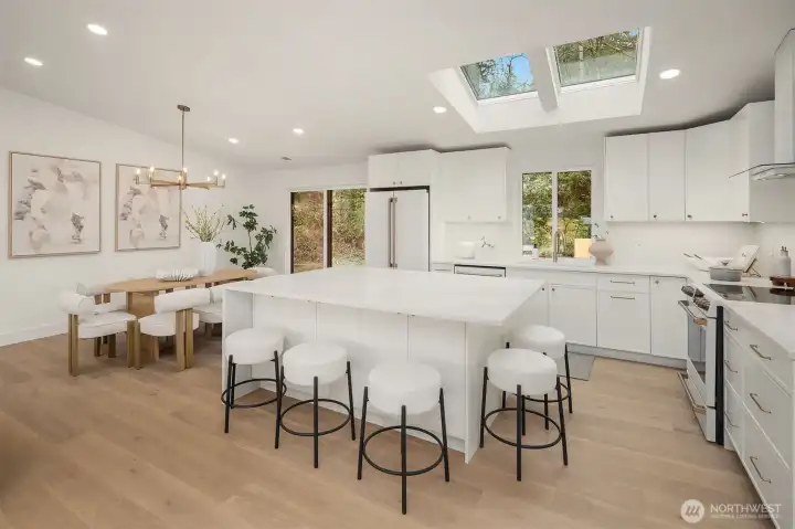 Stunning Mid-Century Modern retreat in Mercer Island’s coveted South End. This beautifully updated 4 bedroom + den, 3 bath home blends timeless architecture with thoughtful modern upgrades. Vaulted ceilings and expansive skylights flood the home with natural light, while peek-a-boo views of Lake Washington and the mountains create a serene backdrop.The open concept kitchen and great room are designed for everyday living and effortless entertaining, featuring new flooring, cabinetry, and fully renovated kitchen and baths. Three bedrooms are conveniently located on the main level, including a spacious primary suite with a walk-in closet and luxurious 5 piece bath.Step outside to expansive entertaining decks overlooking a generous grassy yard—partially fenced and perfect for play, pets, or peaceful relaxation. Enjoy mini-split A/C and heating for year-round comfort, plus a finished attached 2-car garage.Ideally located near the Mercer Island Beach Club, Clark Beach, Pioneer Park trails, QFC, and Starbucks—this home offers the perfect balance of style, comfort, and community in one of the Island’s most desirable neighborhoods.