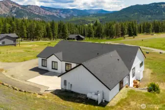 Set on 3 private acres in the sought-after Swauk/Teanaway area, this 2022 resale offers sweeping, unobstructed mountain views and true retreat-style living. The open-concept design centers around a light-filled great room with vaulted ceilings, large windows, and a wood-burning stove for cozy evenings. The kitchen is built for gathering and serious cooking alike, featuring stainless steel appliances, custom cabinetry, quartz countertops, gas cooktop, double ovens, two refrigerators, and a walk-in pantry. The dining area opens to a covered patio—perfect for year-round enjoyment. The spacious primary suite captures more mountain views and includes a spa-inspired bath with double vanity, heated floors, large walk-in shower, pedestal soaking tub, and generous walk-in closet. Two additional bedrooms, a full bath, and a dedicated office provide flexibility for guests or remote work. A practical drop zone and utility room connect to the oversized two-car garage. Additional features include a tankless water heater, ductless mini-split system, and more. HOA allows short-term rentals, including VRBO. Welcome Home!