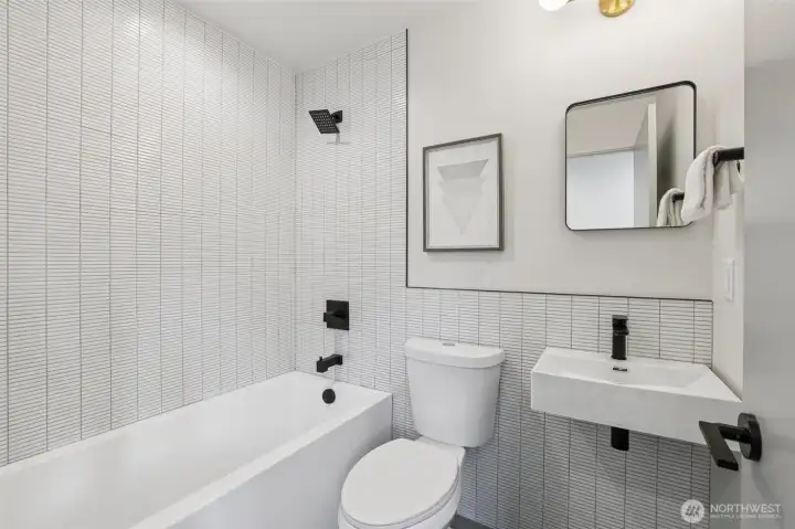 Experience elevated coastal living just steps from the shoreline at 2628 58th Ave SW in Seattle’s Alki Beach neighborhood. This exceptional new construction home offers 2 bedrooms plus a private garage, along with 2.5 bathrooms, a dedicated laundry area, & a ensuite primary suite. Designed with a distinctive chic beach aesthetic, the home showcases a statement kitchen featuring custom finishes, modern cabinetry, designer fixtures, and thoughtful layout optimized for both everyday living and entertaining. Don't miss the gorgeous light fixtures throughout the home! Enjoy close proximity to neighborhood destinations including Alki Beach Park, waterfront walking & biking paths, pickleball courts, and local dining such as Harry’s Beach House, all just moments away. Outdoor living is equally compelling with private exterior space and a rooftop deck offering panoramic Puget Sound and mountain views. The elevated vantage point provides a dynamic setting to watch ferry traffic, sunsets, and year-round waterfront activity. Additional highlights include a private garage with electrical for future EV charging, air conditioning and a location that blends beach access with convenient connectivity to the greater Seattle area. A rare opportunity to own a thoughtfully designed new construction home near Alki Beach with rooftop water views, flexible living space, and dedicated parking.